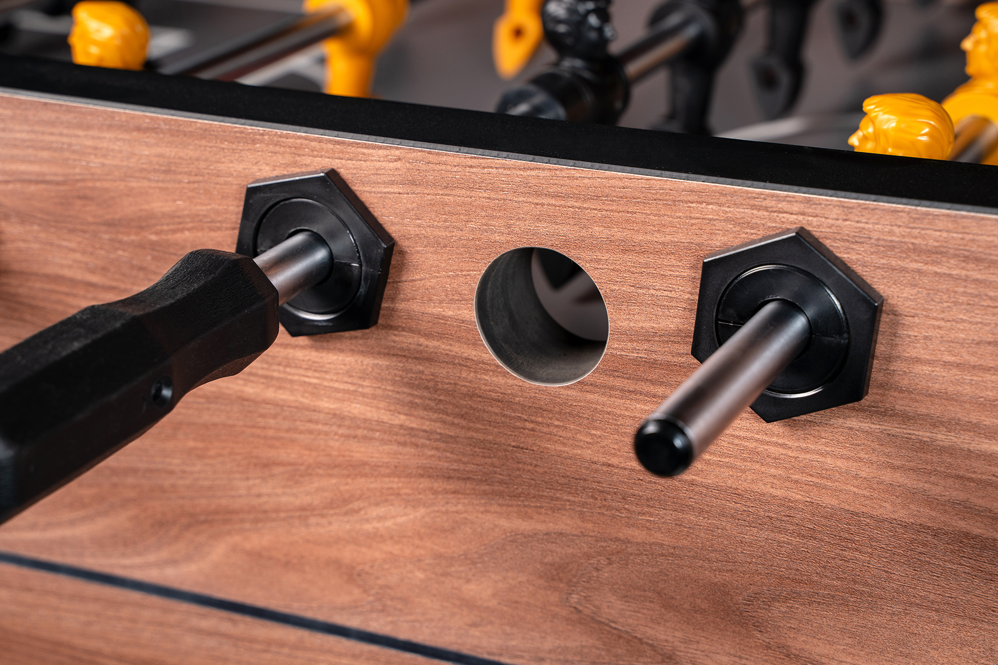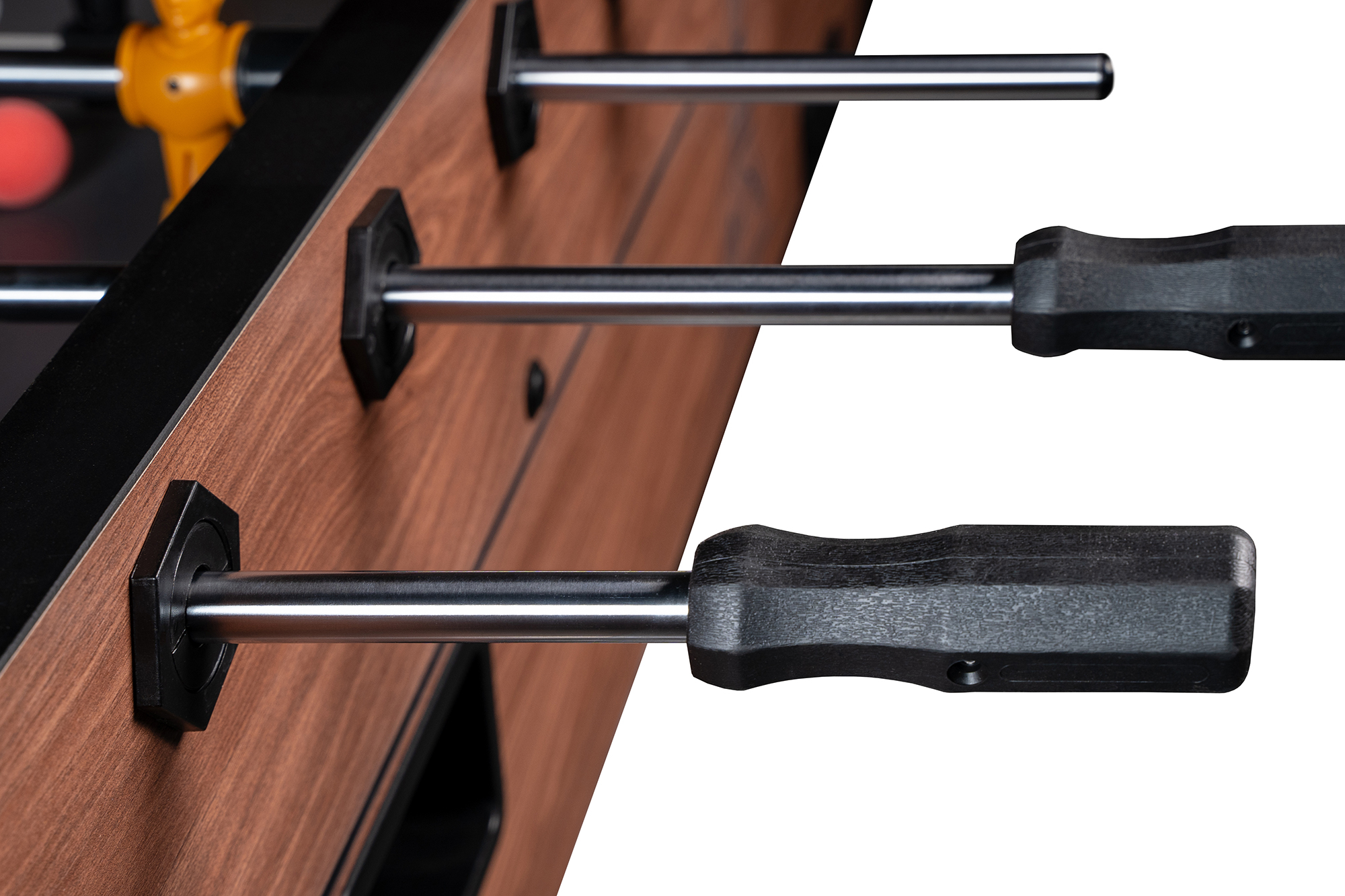• Штанги, на которых фиксируются футболисты, не ржавеют, гладкие и прочные. Это способствует долгому сроку службы стола и гладкому движению игроков.