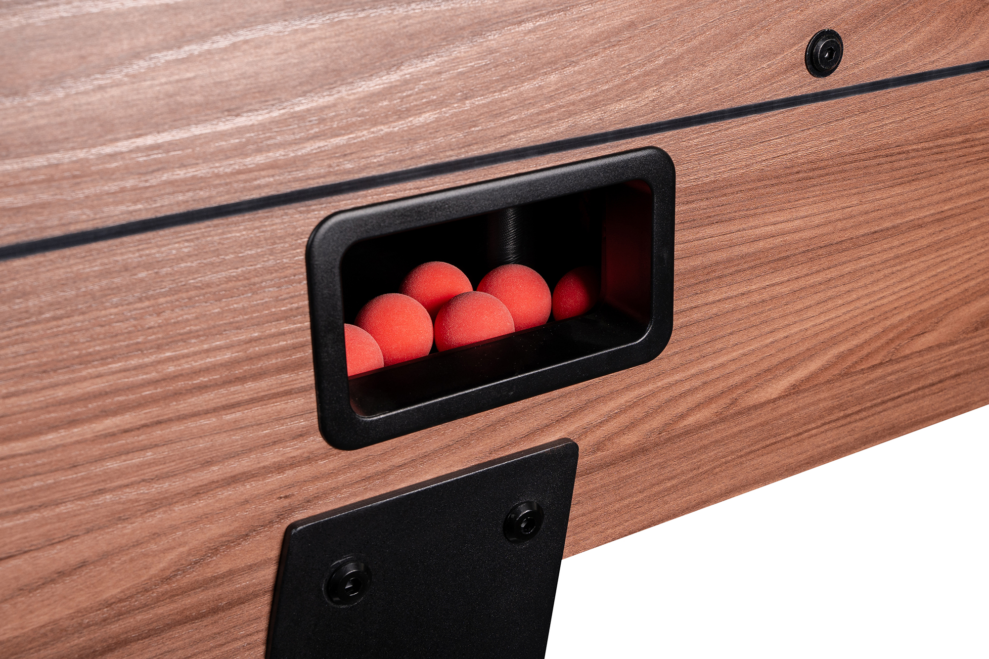 МДФ толщиной 18 мм с HPL покрытием с обеих сторон. Это обеспечивает долговечность, стойкость к износу и гарантирует идеальную поверхность для игры, на которой мяч будет двигаться плавно и без искажений.