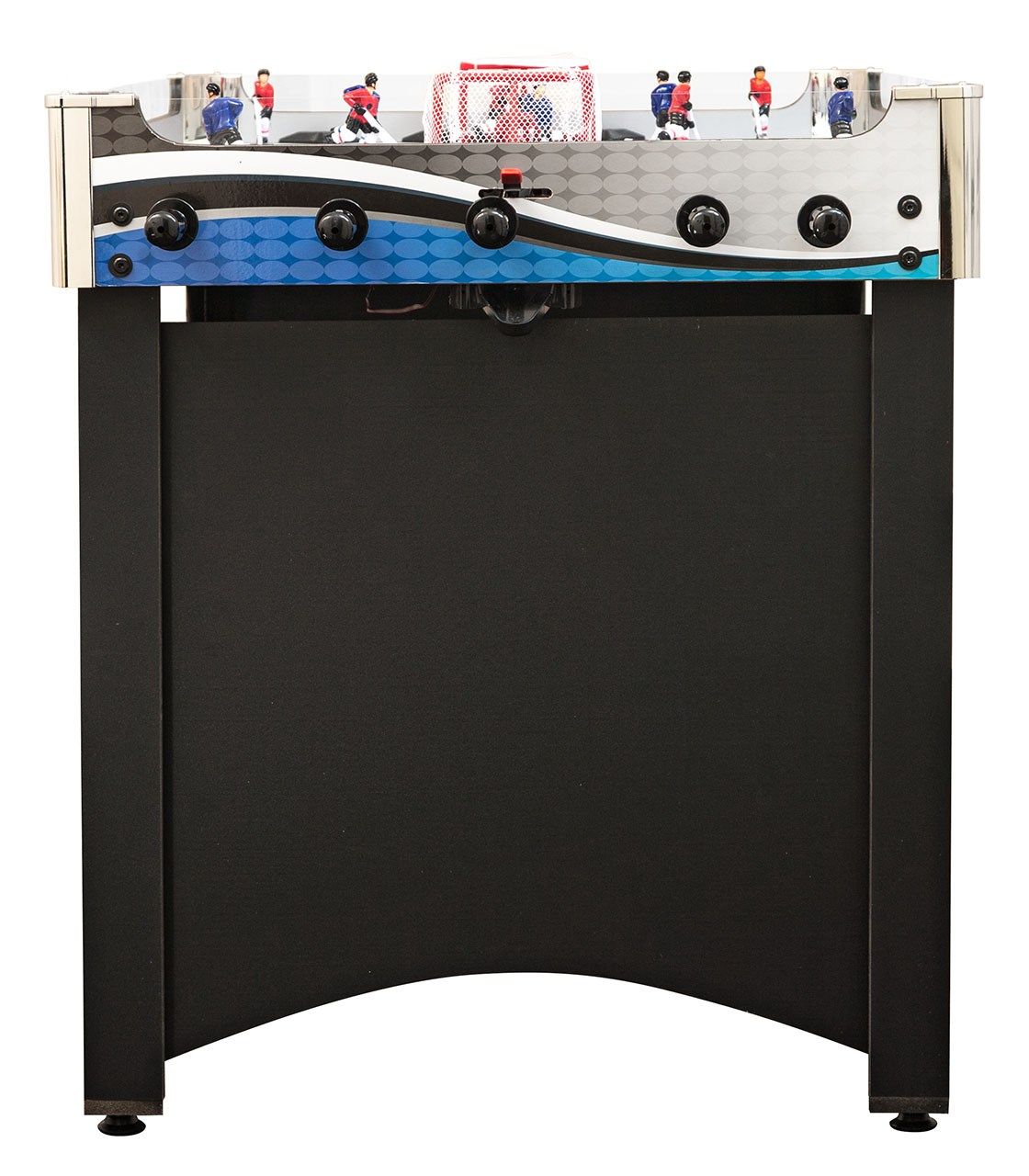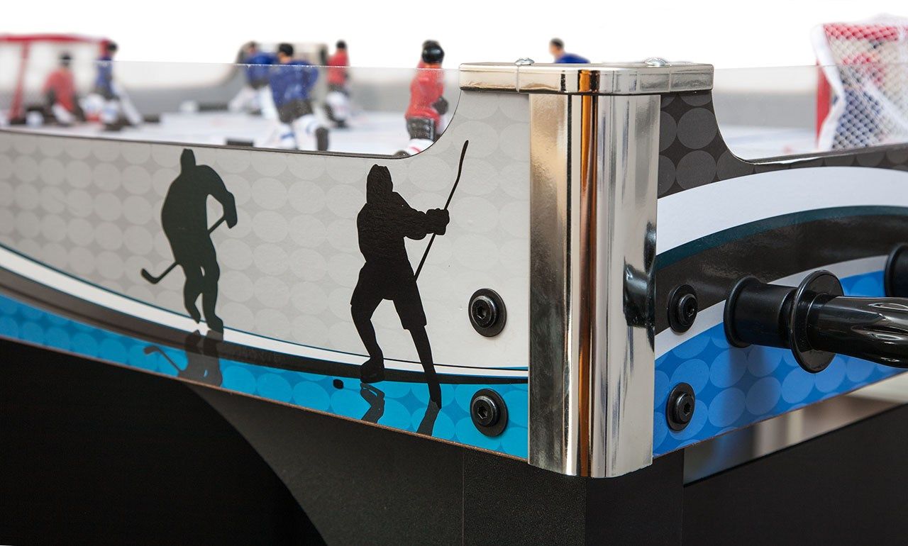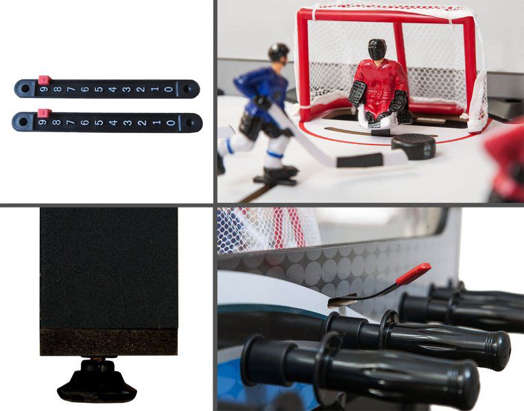 Корпус настольного хоккея «Alaska» поставляется в собранном виде — остаётся только установить игроков, прикрутить ножки и счётчики. После этого стол полностью готов к игре!