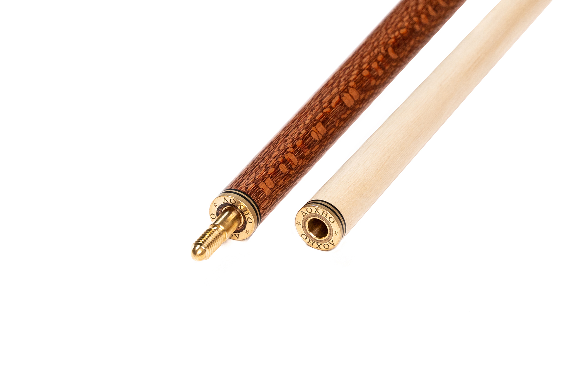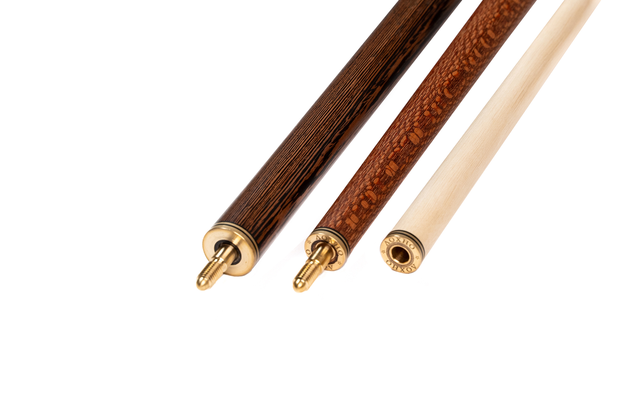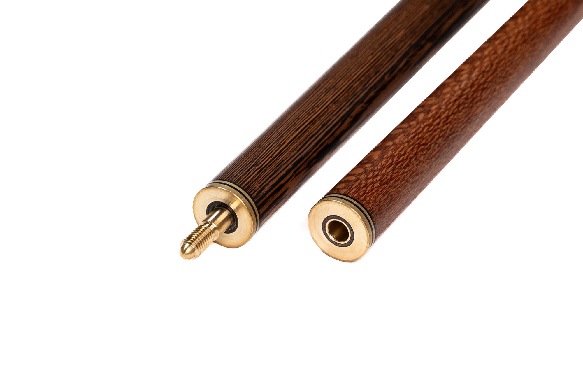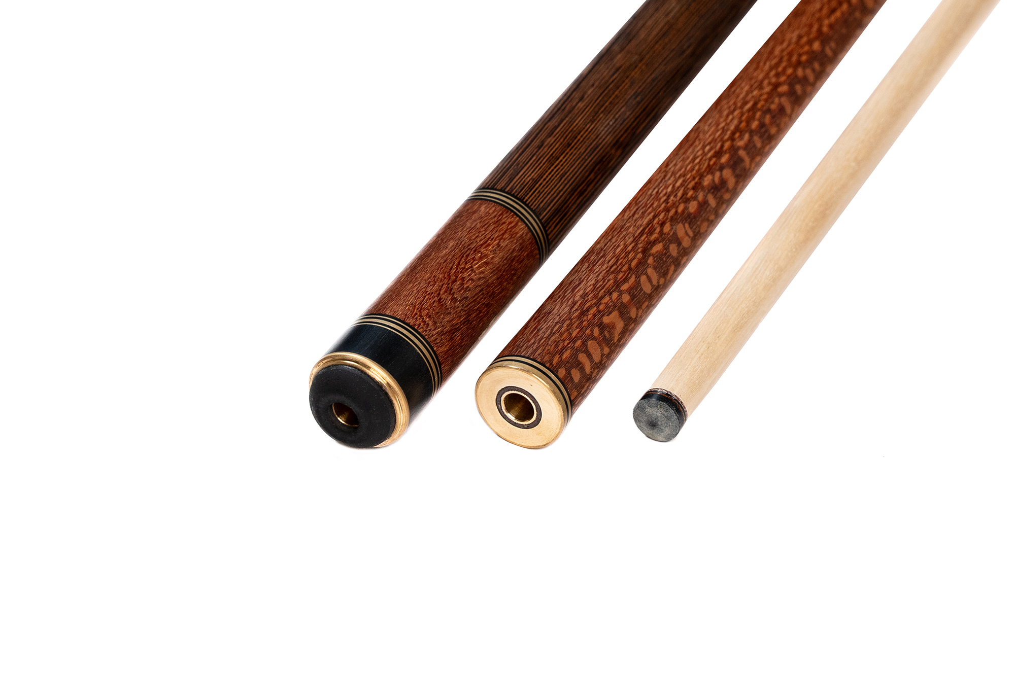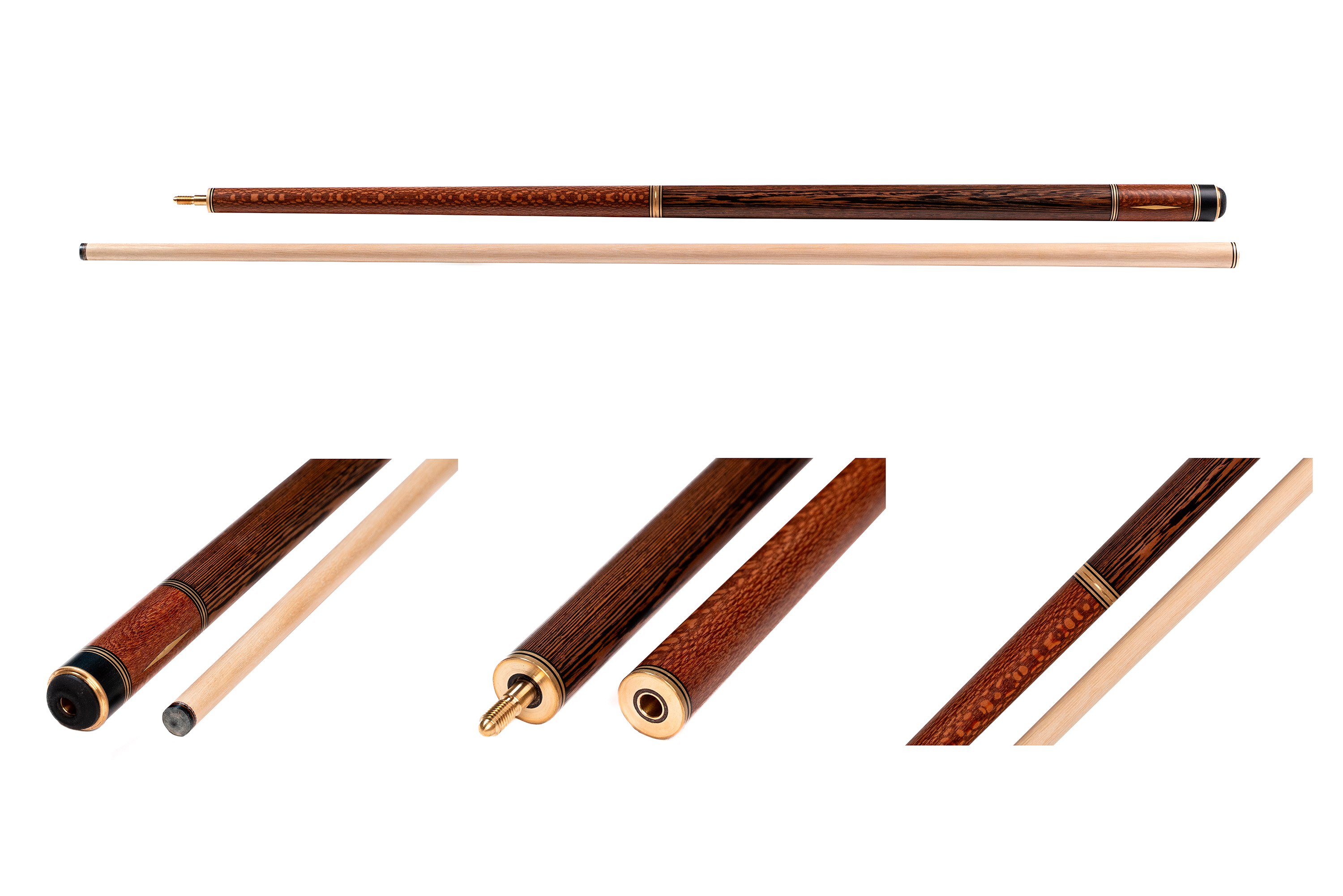 Турняк: Представляет собой элегантную комбинацию двух экзотических пород. Шелковое дерево 15-тилетней выдержки с уникальной переливающейся текстурой придает кию изысканный внешний вид, а вставки из темного африканского венге создают стильный контраст. Декорирован инкрустацией из латуни.