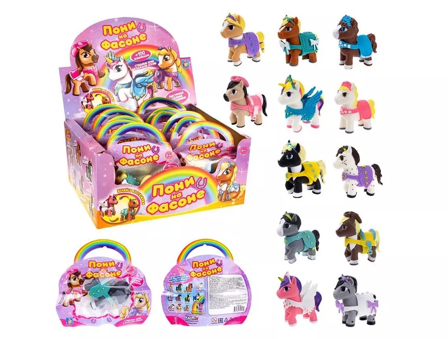 Пони на фасоне–это тянущиеся лошадки разных пород в ярких и веселых эластичных попонах. Костюмчики можно снимать и снова надевать, а так же меняться ими с друзьями.