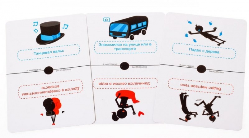 Игроки тянут случайную карточку из колоды и зачитывают фразу, начиная ее словами: «Я никогда не…». И если кто-кто из участников уже совершал подобное действие – ему потребуется отпить из бокала. Получится интереснее, если признания будут сопровождаться историями, как это все получилось. И пускай дружный смех, вздохи умиления или удивления не смущают вас, в этот вечер секретов никому не должно быть стыдно. Игра не закончится до тех пор, пока участники не переслушают чужие тайны, пока не закончатся напитки или сами карты. Победит тот, кто доживет до последней карточки, или наоборот, кто совершил в своей жизни больше всего сумасбродных поступков.