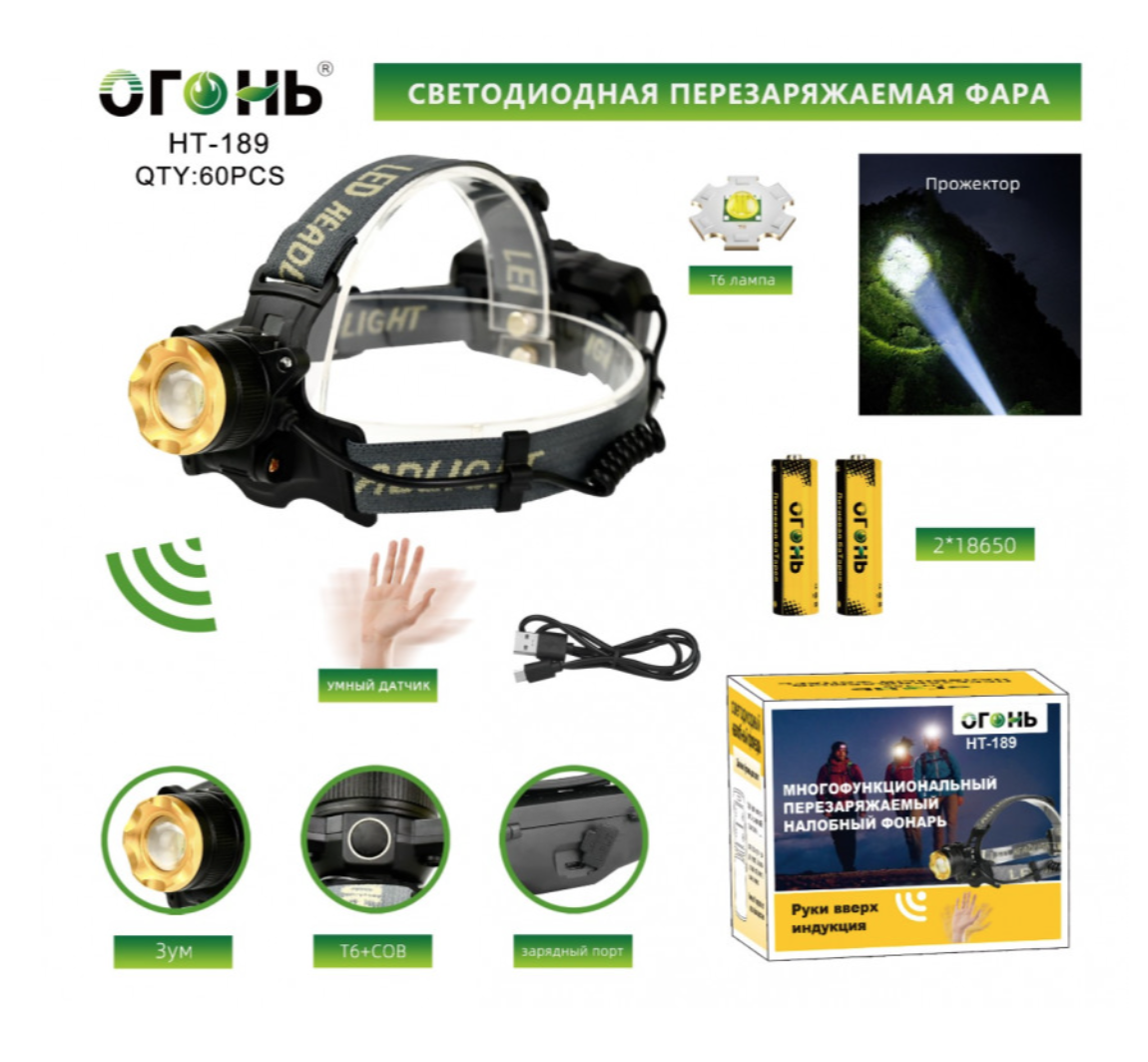 Налобный фонарь аккумуляторный HT-193-1 1 210 руб. / шт.