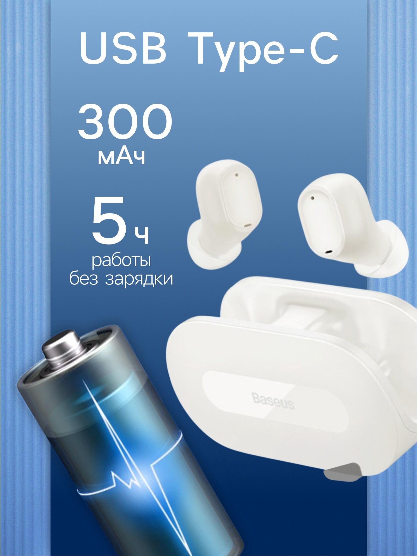 Емкость аккумулятора: 300 мАч (кейс), 40 мАч (каждый наушник)