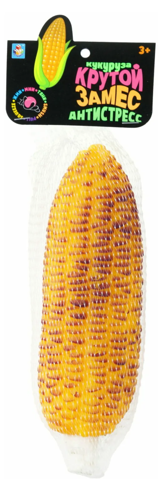 Детская игрушка-жмяка "Крутой замес" от бренда 1TOY представлена в форме яркой желтой запеченой кукурузы, размером 17х6 см.