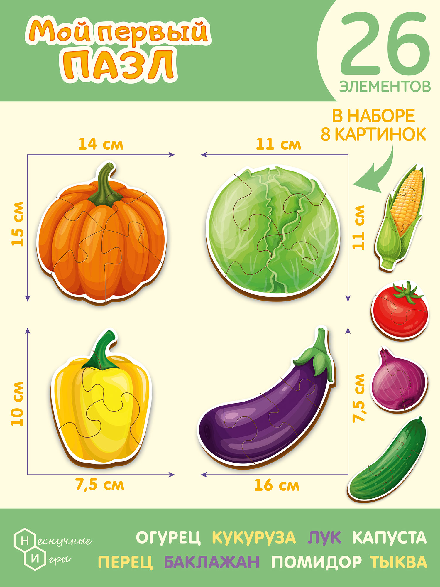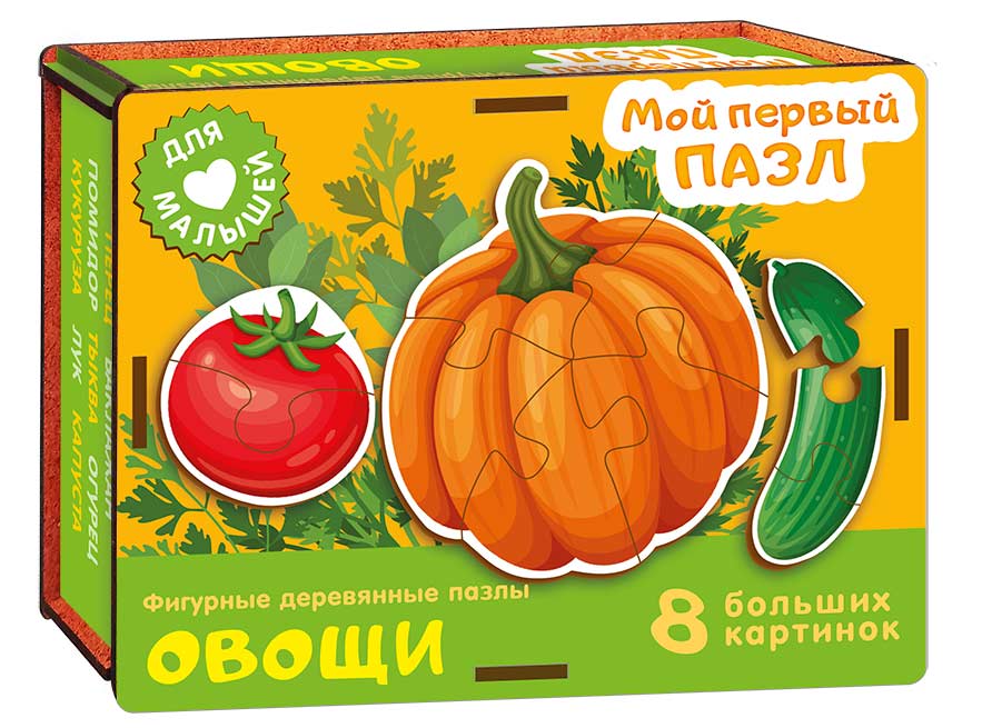 Фигурный деревянный пазл Мой первый пазл Овощи - это простая развивающая игра для малышей от 3-х лет.