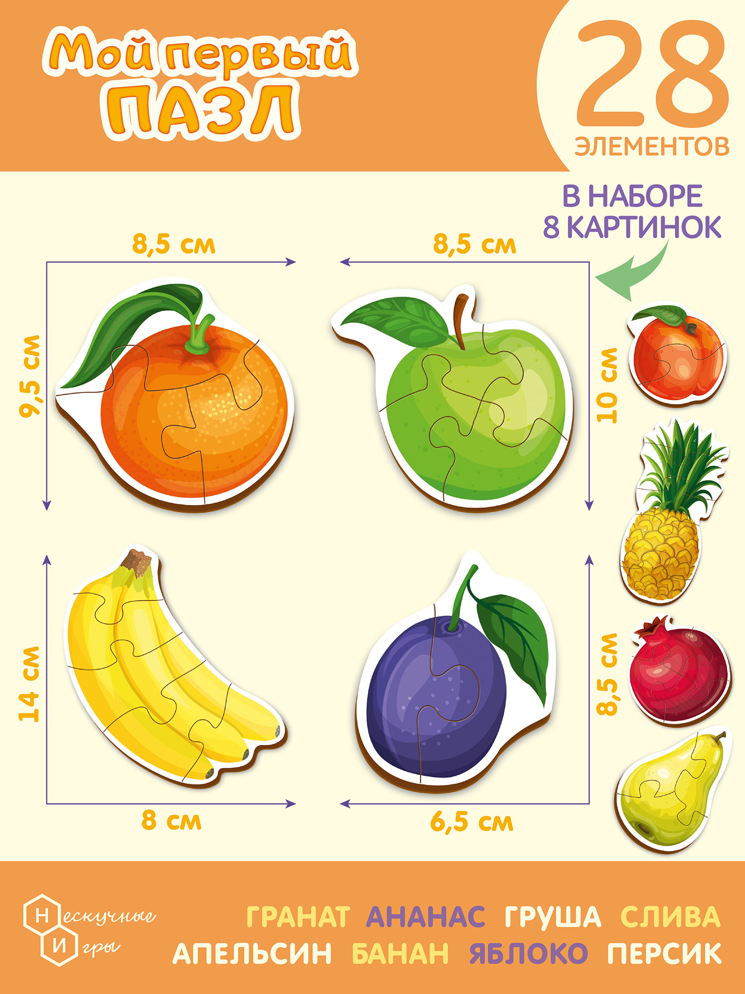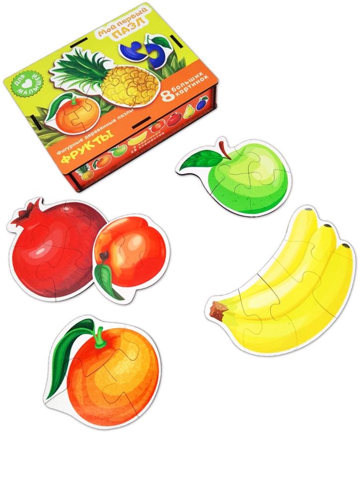 Фигурный деревянный пазл Мой первый пазл Фрукты - это простая развивающая игра для малышей от 3-х лет.