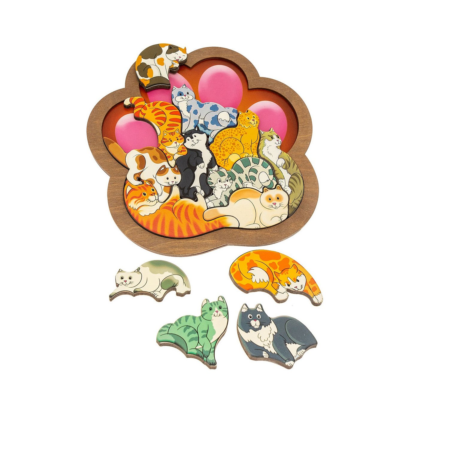 Деревянный зоопазл Нескучные игры Кошки 14 деталей