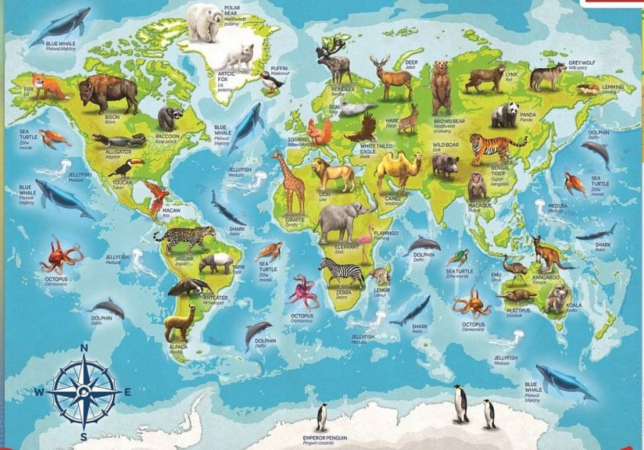 Пазл Trefl Рамка Карта Мира с животными подходит для самых маленьких детей, развивает мелкую моторику рук, а картинки с животными помогут крохе изучить ареал распространения животных по всему миру.