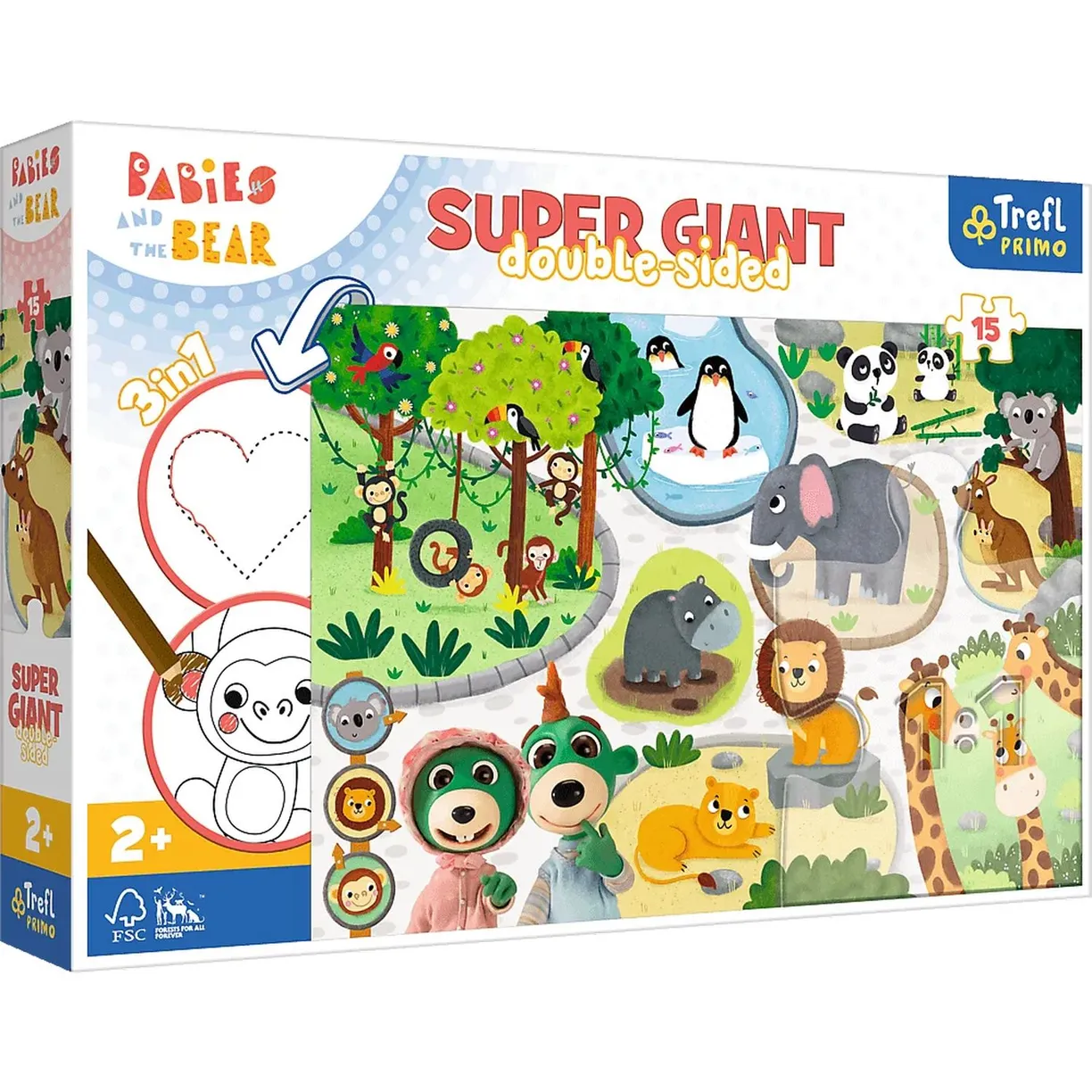 Пазл-раскраска Trefl «Малыши в зоопарке» - это три развивающие игры для детей от 2 лет, собранные в одном наборе.