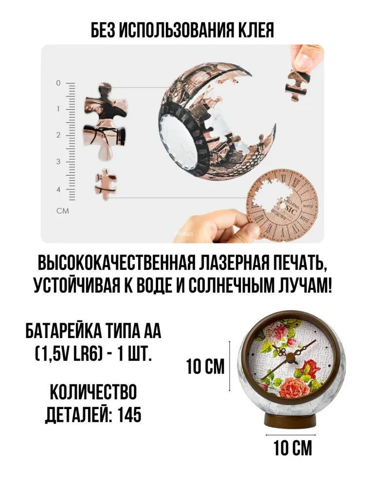 Этот уникальный 3D пазл позволяет собрать стильные и функциональные настольные часы.