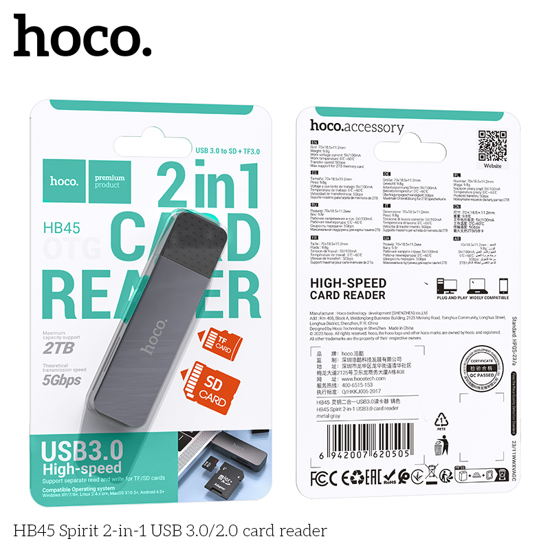 Переходник Type-C Hoco HB52 (HDTV+RJ45+SD/TF+PD+Type-C3.0+USB3.0) 2 147 руб. / шт.