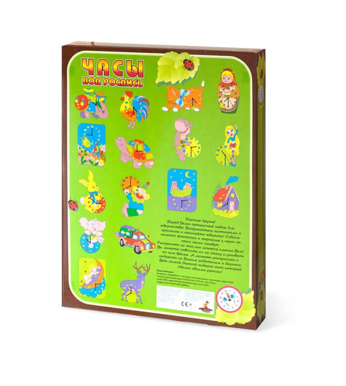 Основа для часов выполнена из прочной, шлифованной фанеры высокого качества, на которую хорошо ложатся акриловые краски из комплекта.