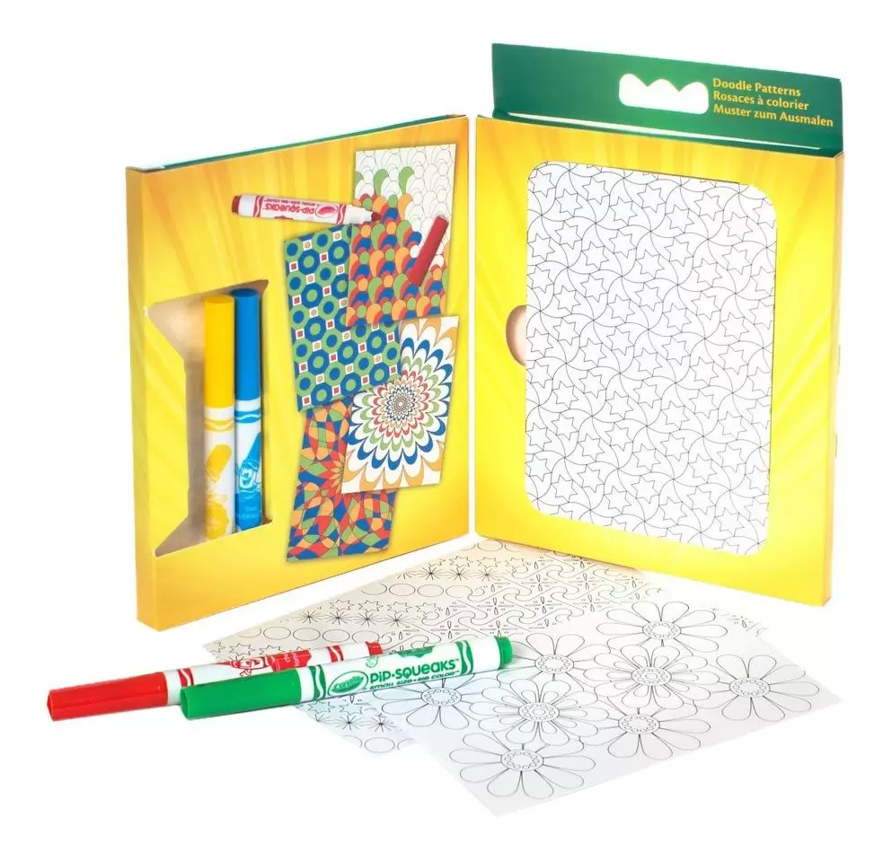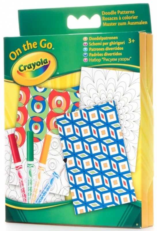 Компактный набор «Рисуем узоры» от Crayola – это картонный кейс, в отсекаx которого удобно расположились 40 листов для раскрашивания, 20 листов с наклейками и 4 фломастера.