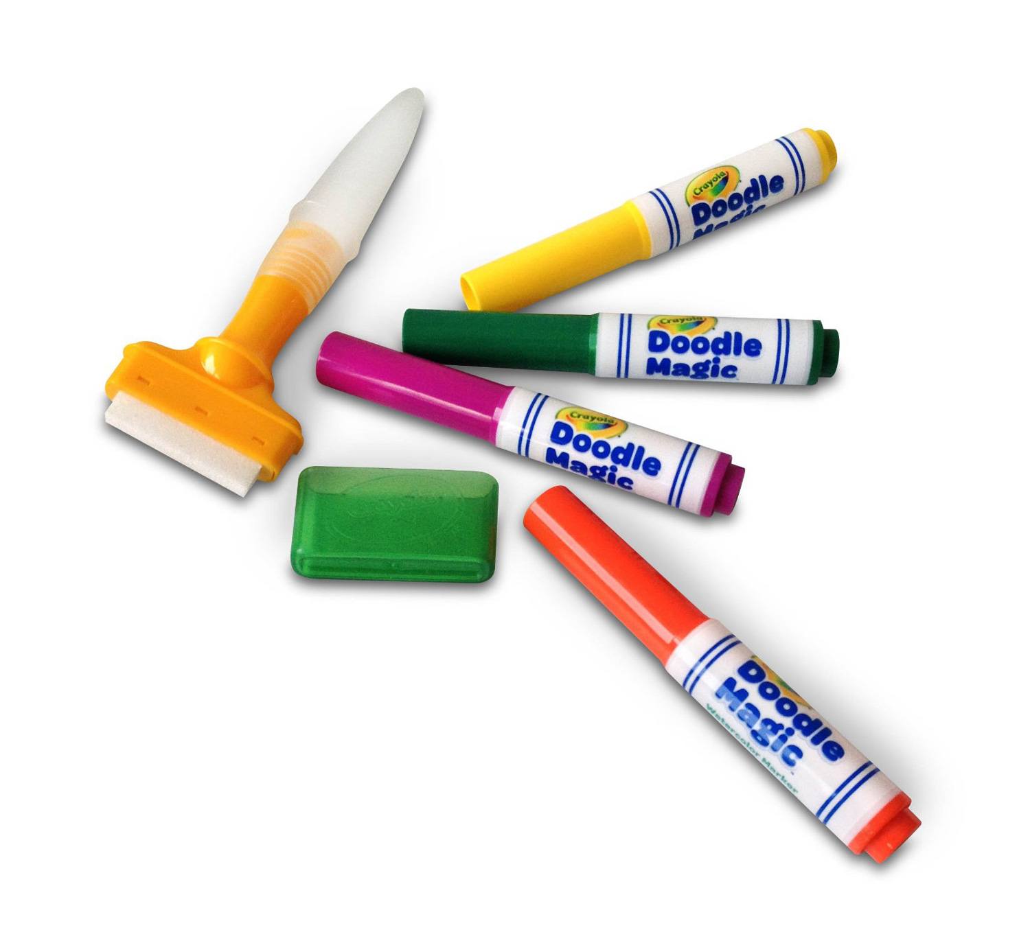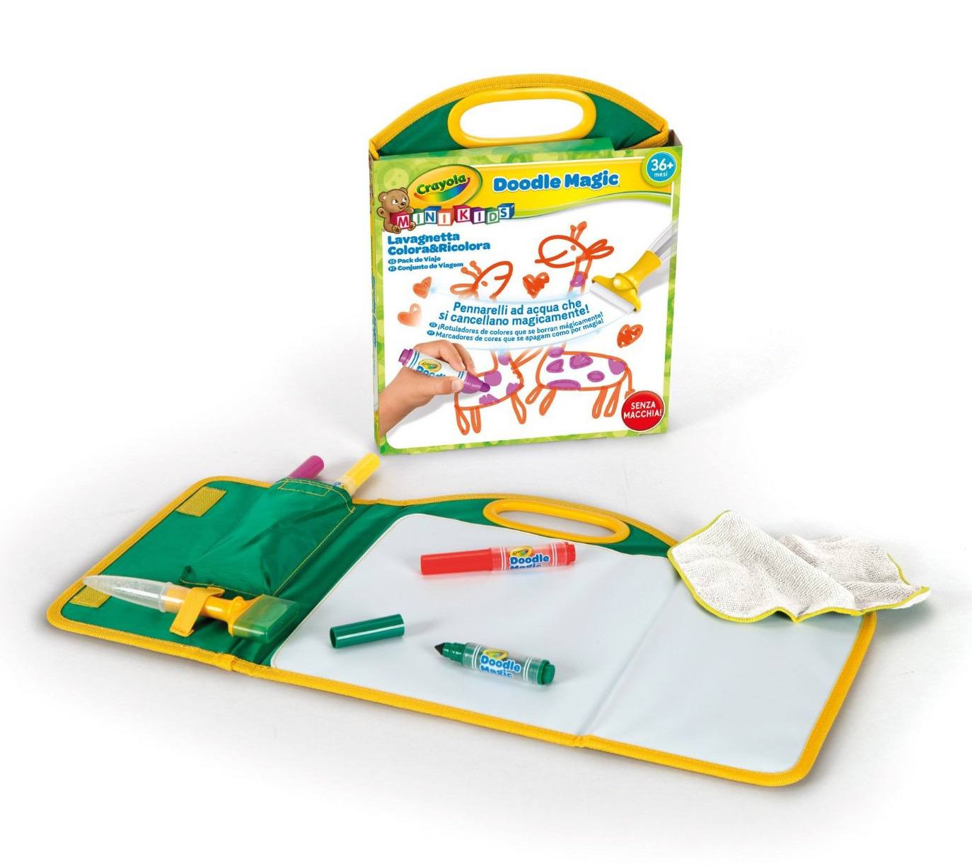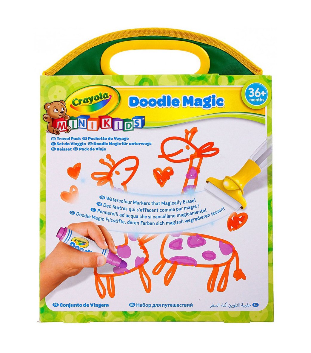 В наборе имеются: сумка для переноски; 4 маркера Doodle; полотно для рисования; ластик-губка; тряпочка.