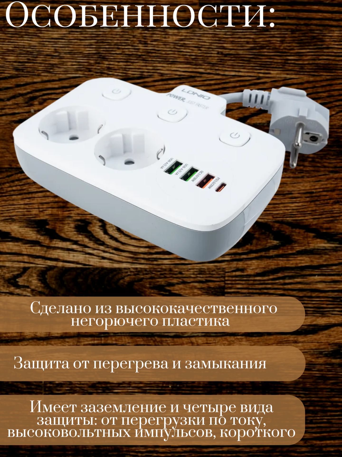Сетевой фильтр LDNio SN5309 (SN5311) на 5 евророзеток + 3 USB 2 м, белый 3 050 руб. / шт.