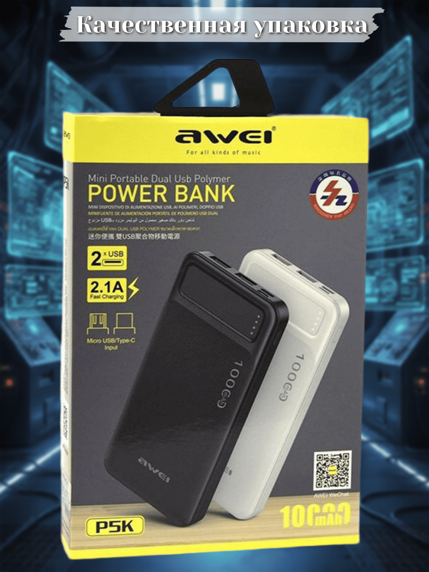 Awei P5K 10000 сочетает в себе функциональность, современный дизайн и удобство использования, делая процесс зарядки гаджетов максимально простым и комфортным.