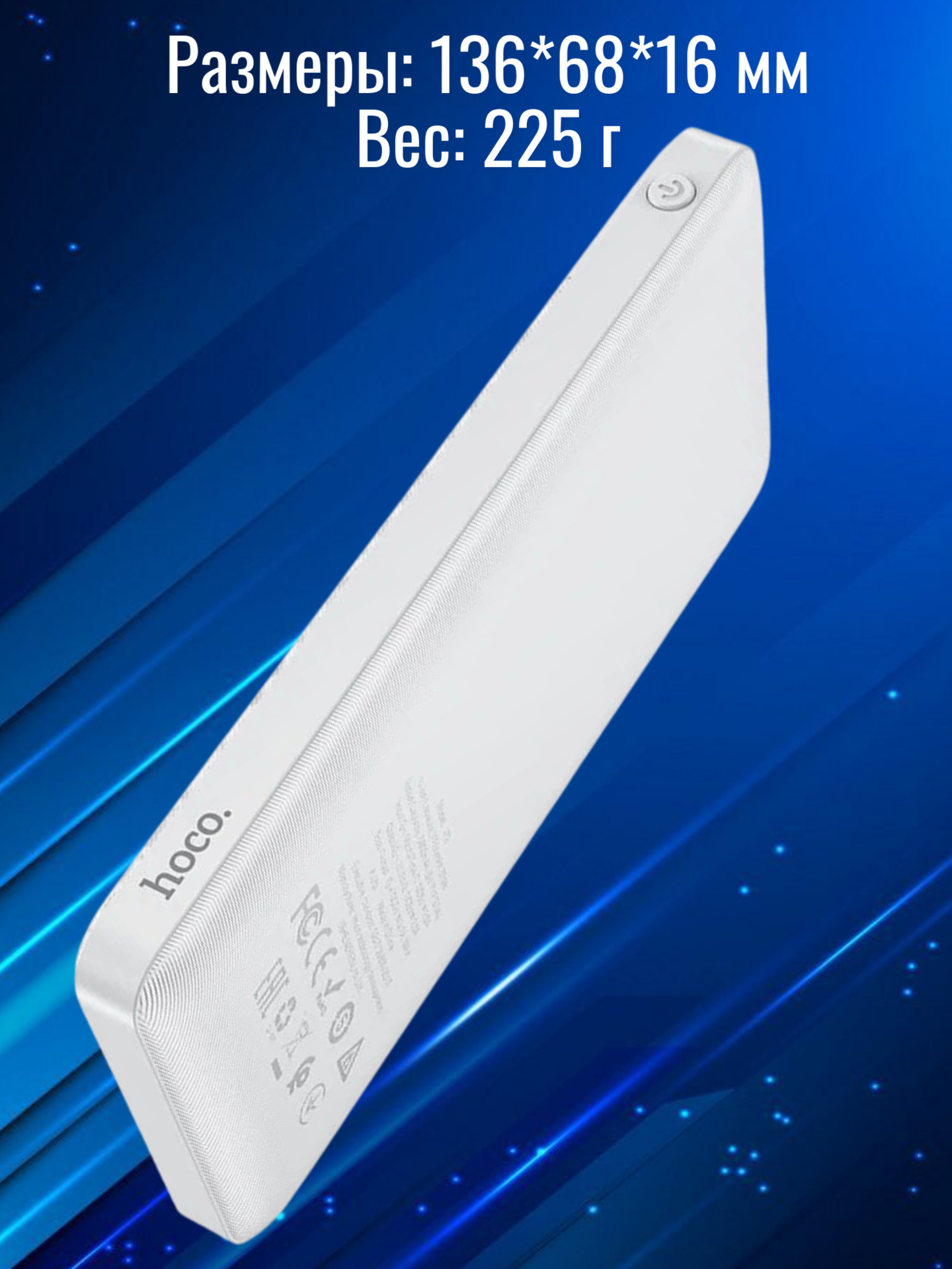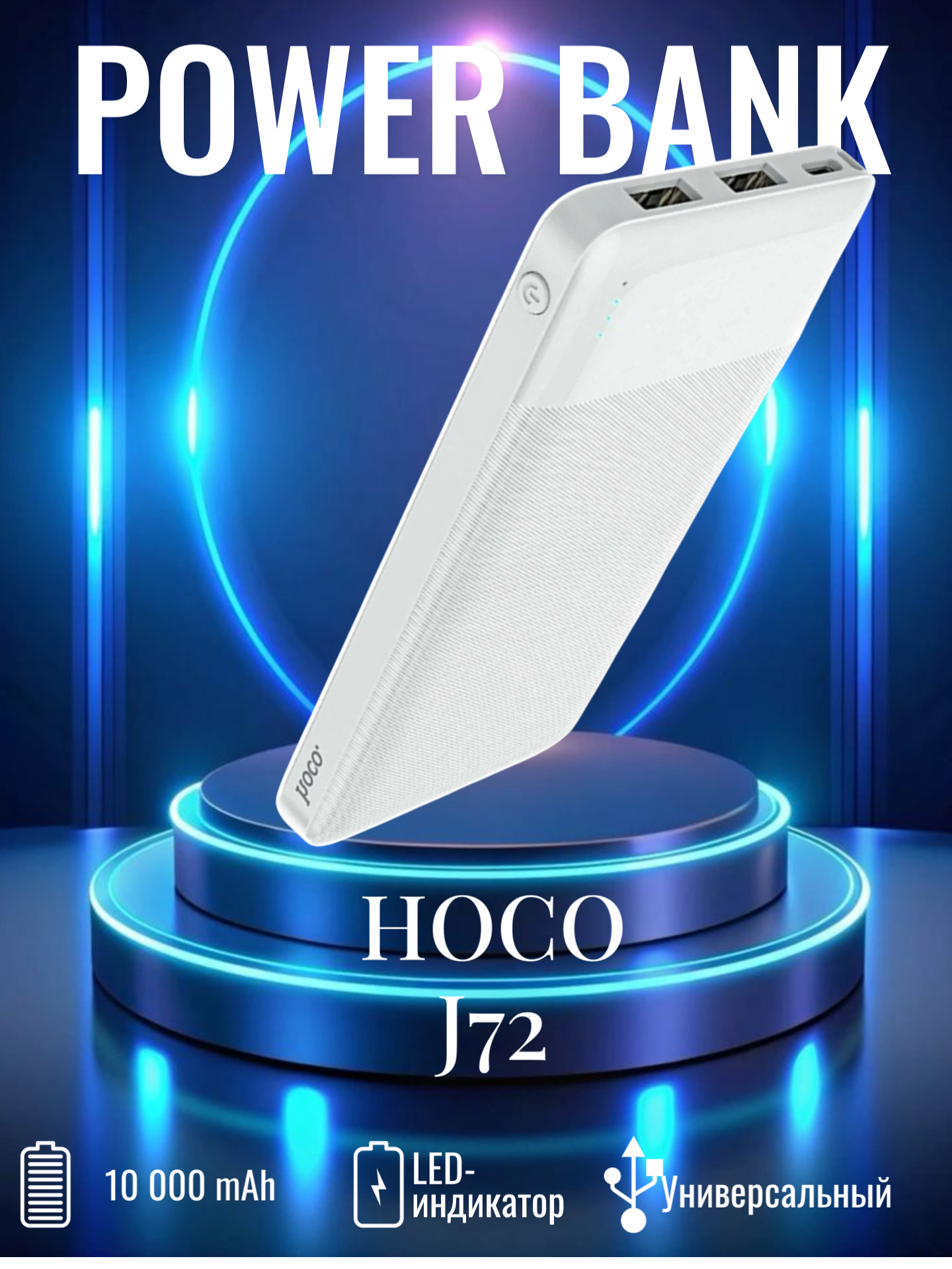 Компактный внешний аккумулятор Hoco J72 в элегантном белом исполнении — идеальное решение для тех, кто ценит надёжность и практичность в путешествиях и повседневной жизни.
