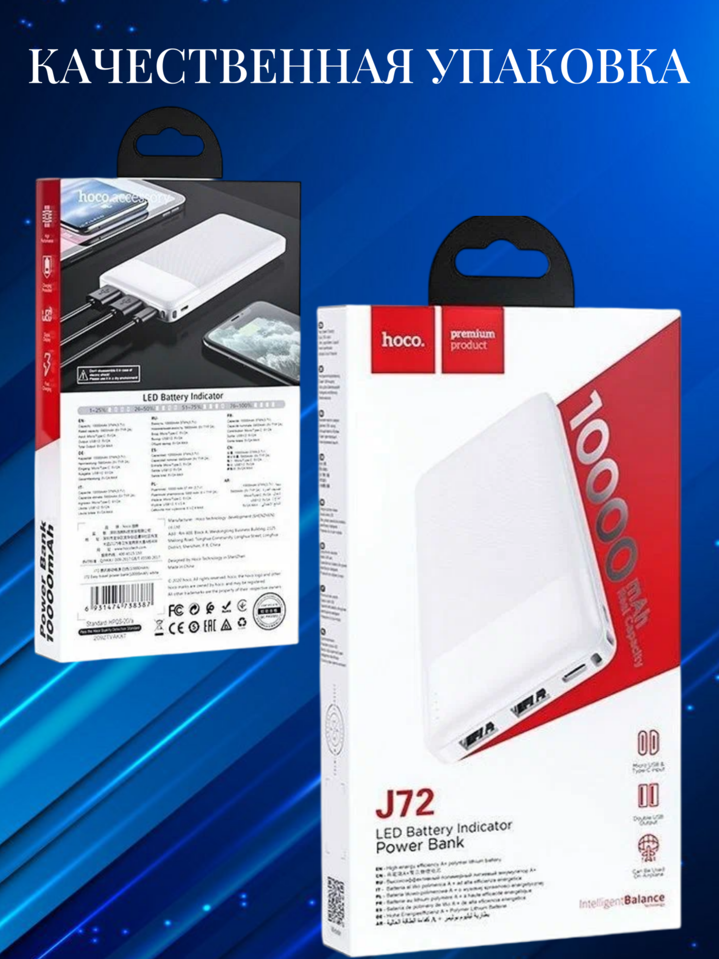 Hoco J72 станет надёжным спутником в поездках и повседневной жизни, обеспечивая ваши устройства необходимой энергией в любой ситуации.