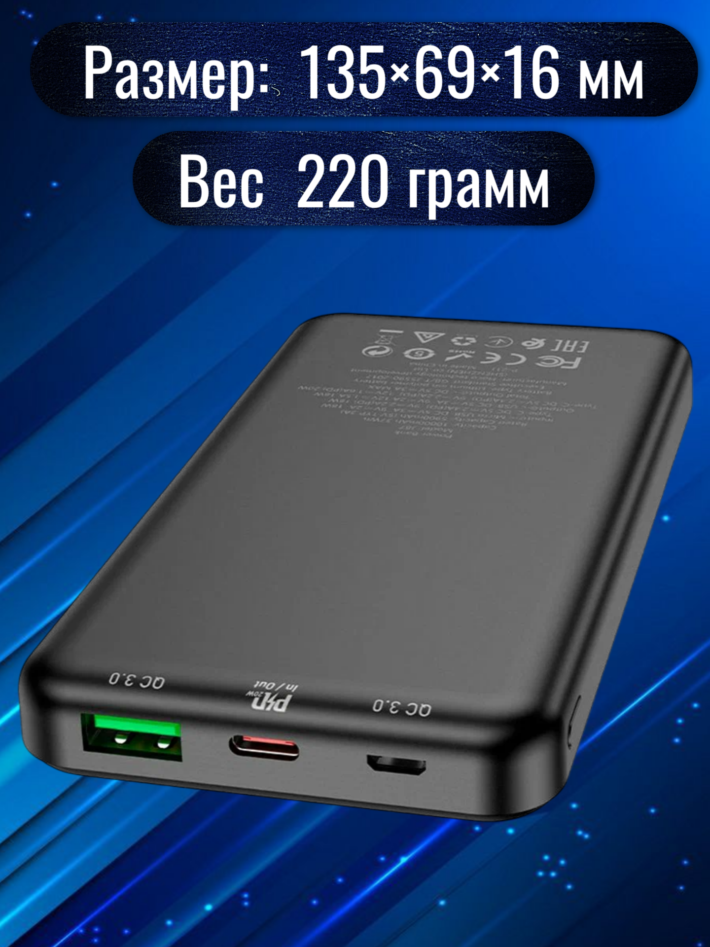 Габариты устройства — 135×69×16 мм, а вес всего 220 г. Благодаря компактным размерам и небольшому весу аккумулятор легко помещается в карман или небольшую сумку, всегда оставаясь под рукой, когда нужна дополнительная энергия.