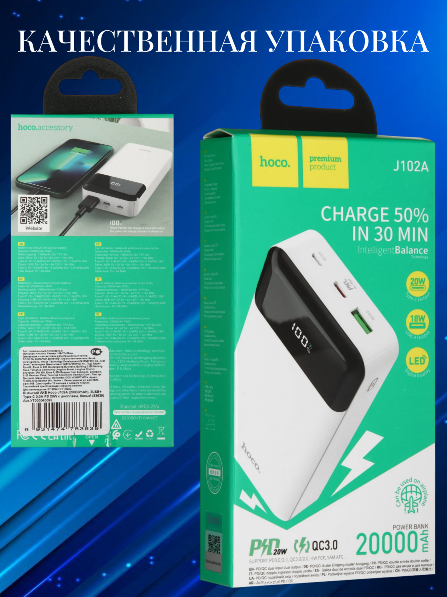 Внешний аккумулятор Hoco 75000 мАч J94 черный 5 833 руб. / шт.