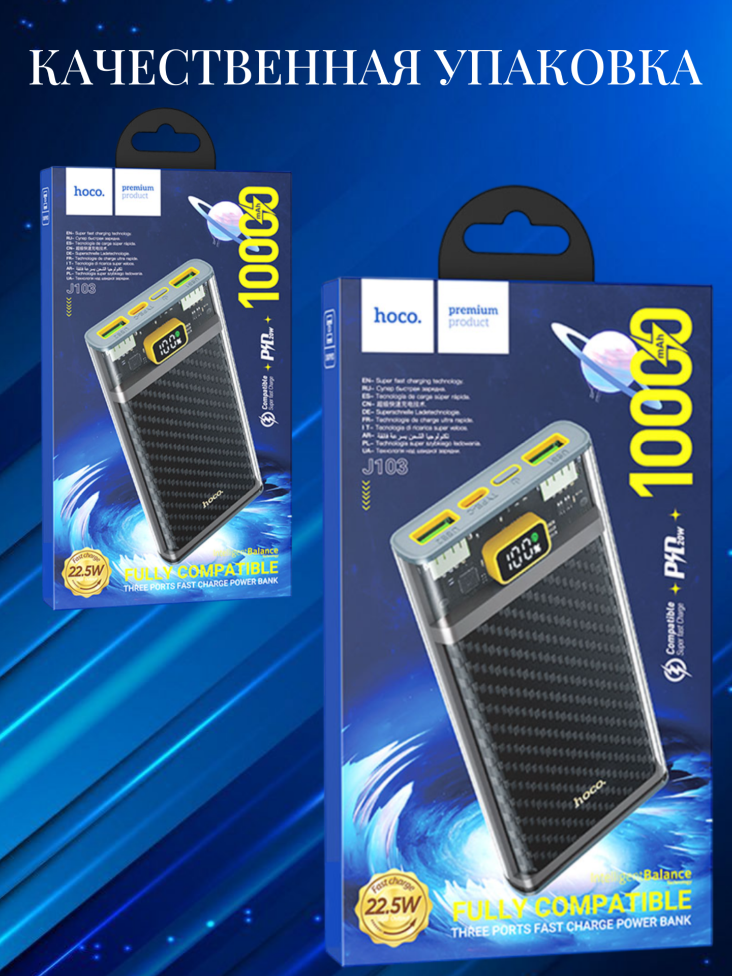 Внешний аккумулятор Hoco J103 22.5W в элегантном черном исполнении представляет собой компактное и мощное устройство для зарядки ваших гаджетов в любом месте.
