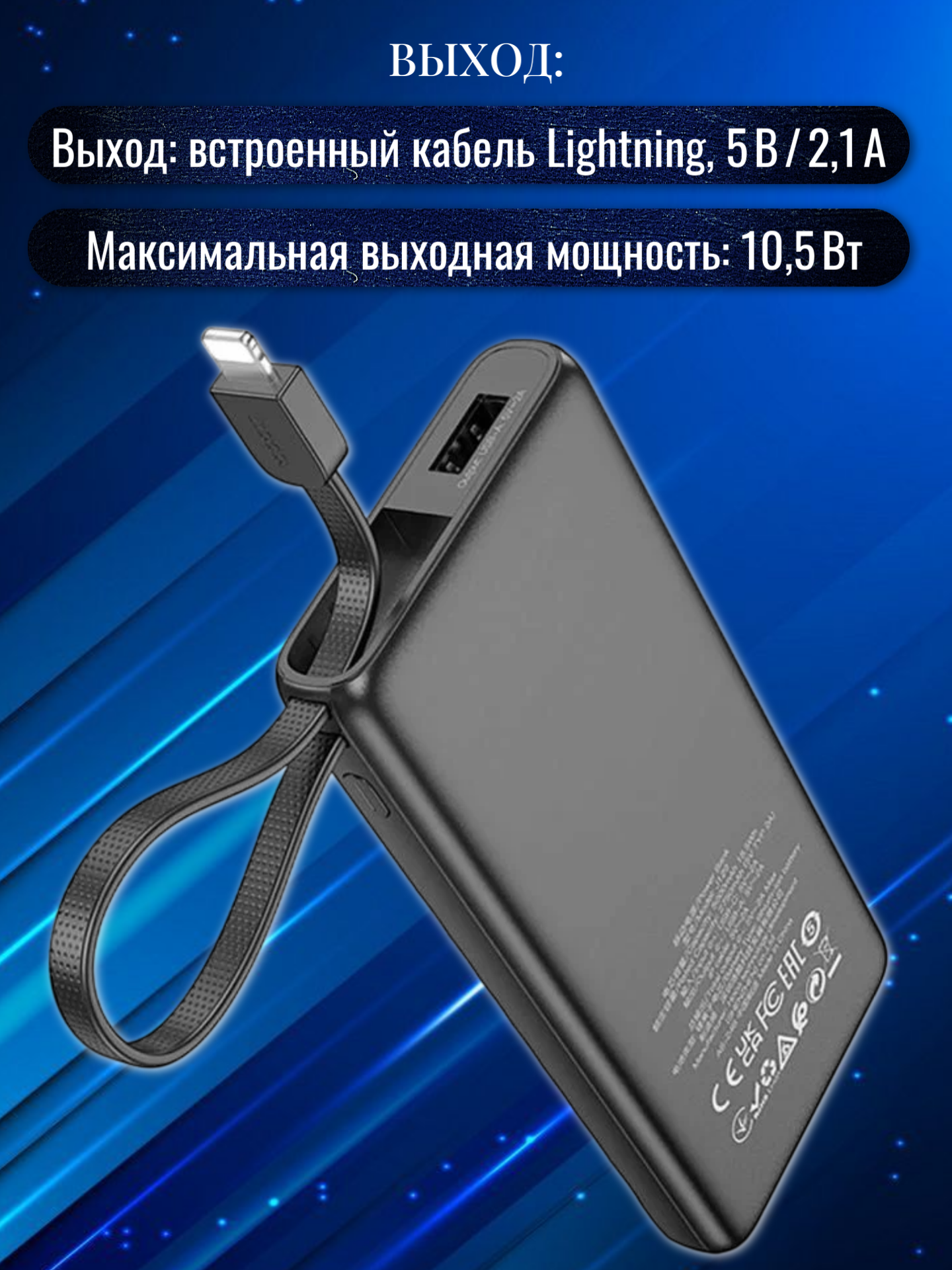 Выход (зарядка устройств): встроенный кабель Lightning, 5 В / 2,1 А.