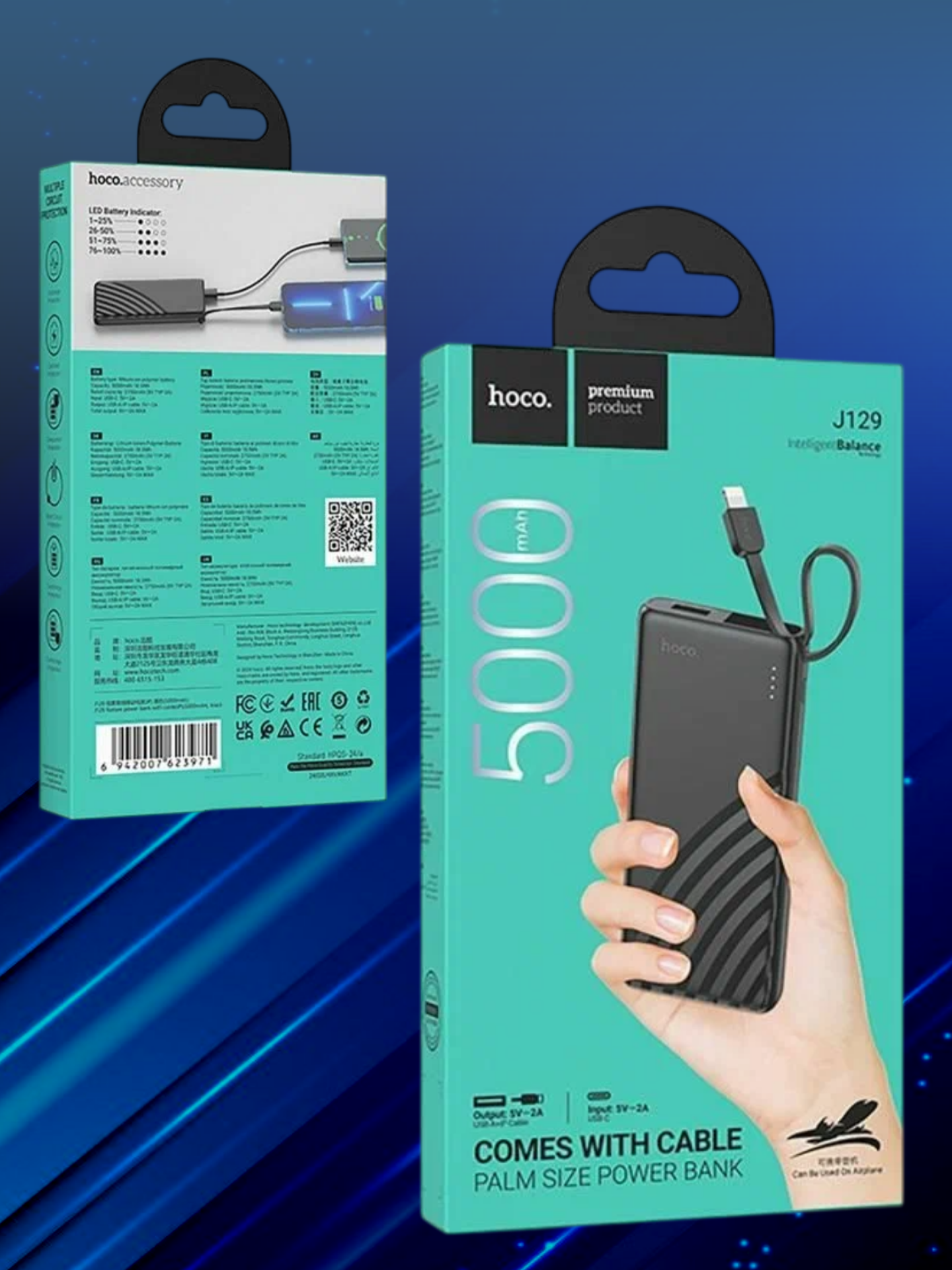 Hoco J129 — это практичное и надёжное решение для тех, кто ищет компактный внешний аккумулятор для iPhone с готовым кабелем Lightning. Идеален для повседневного использования и непредвиденных ситуаций, когда заряд смартфона на исходе.