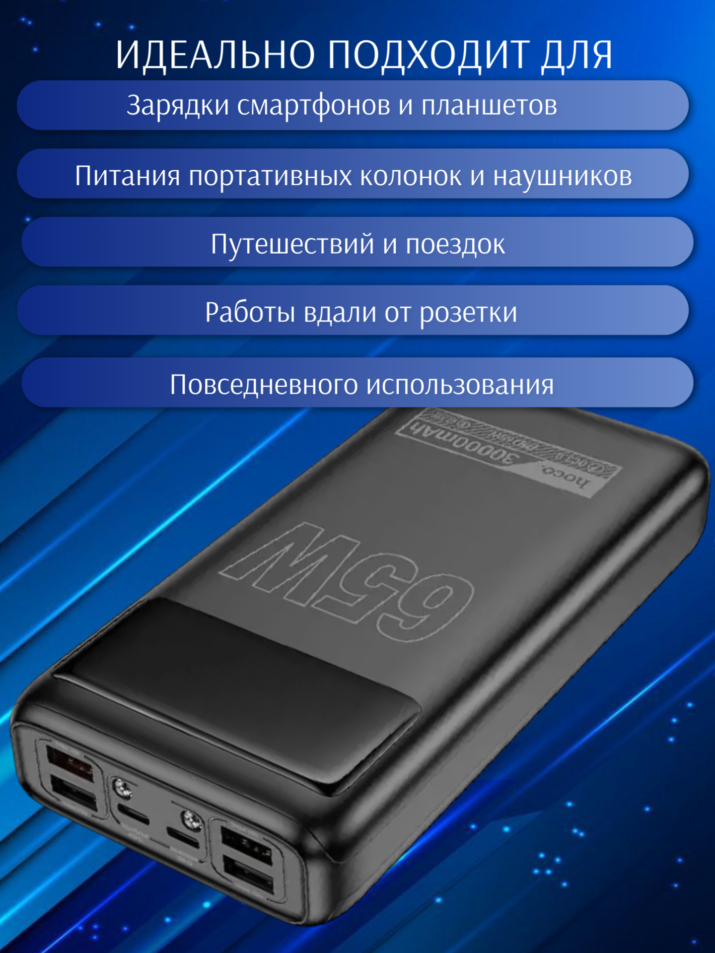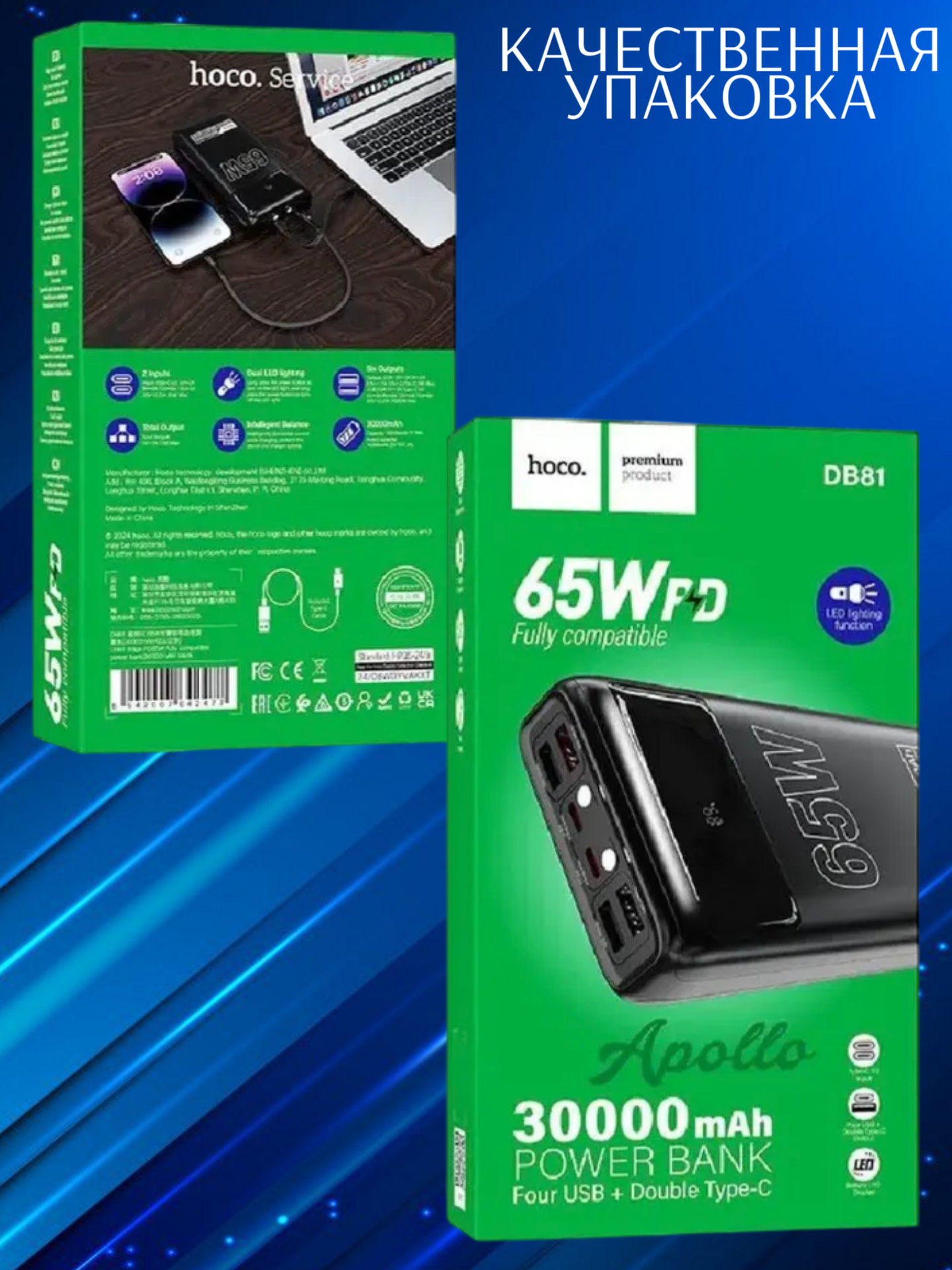 Hoco DB81 станет надёжным спутником в путешествиях, командировках и повседневной жизни. Он объединяет в себе ёмкость, скорость зарядки и безопасность, позволяя всегда оставаться на связи и не беспокоиться о заряде устройств.