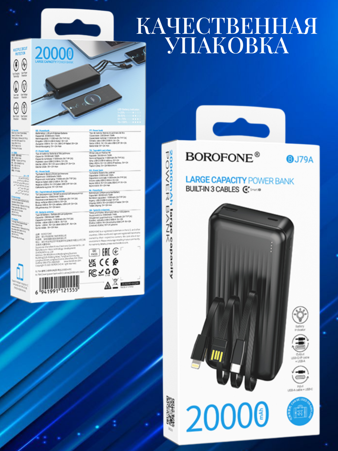 Borofone BJ79A станет надежным источником энергии в поездках, путешествиях и повседневной жизни, обеспечивая ваши устройства необходимой подзарядкой в любой момент.