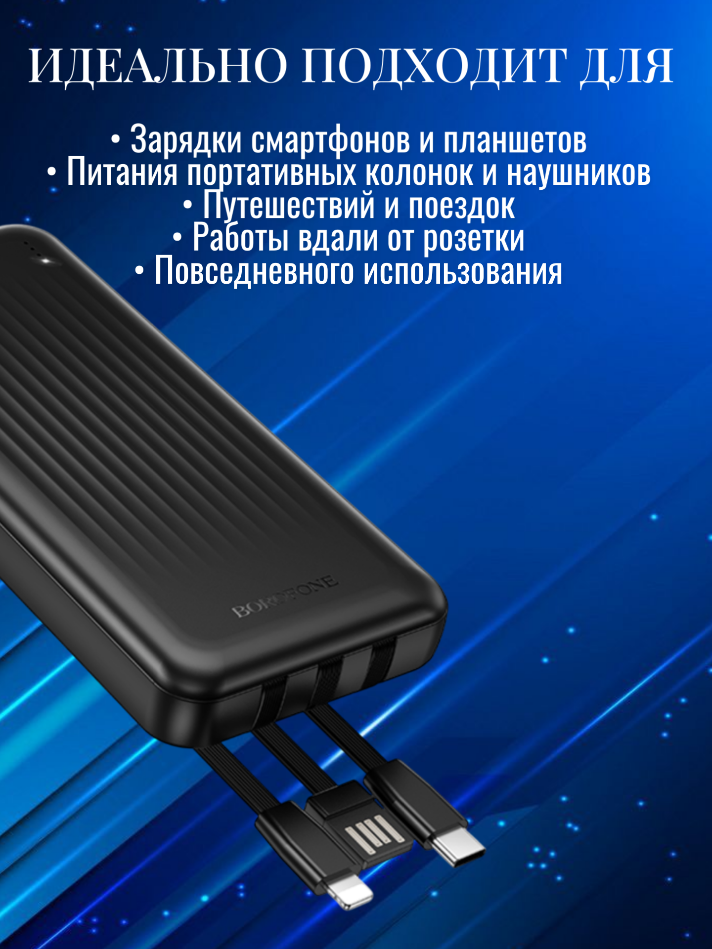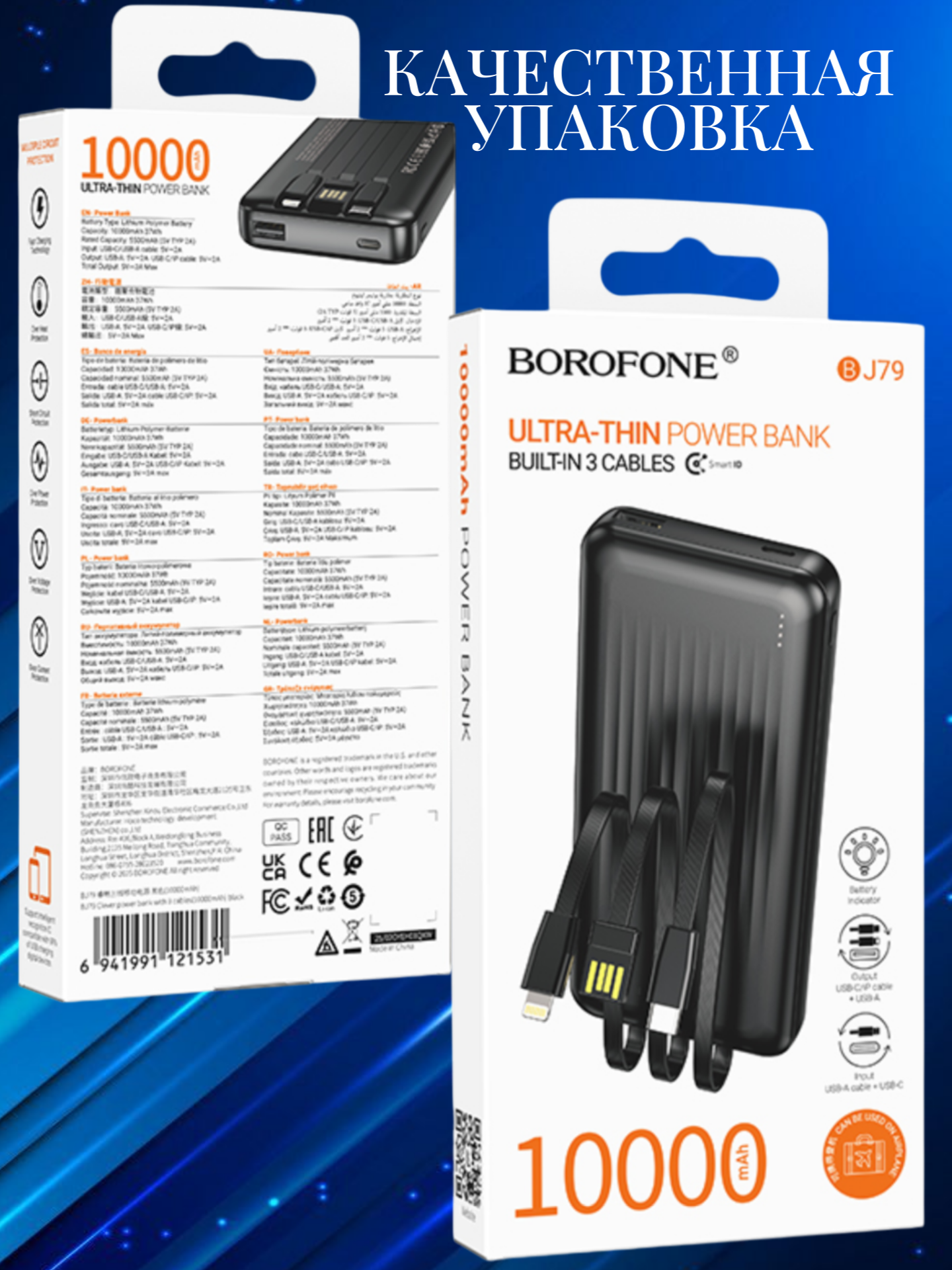 Borofone BJ79 сочетает в себе высокую ёмкость, компактность и универсальность: он легко помещается в карман или небольшую сумку, поддерживает популярные стандарты зарядки и обеспечивает надёжное питание ваших гаджетов в любых условиях.