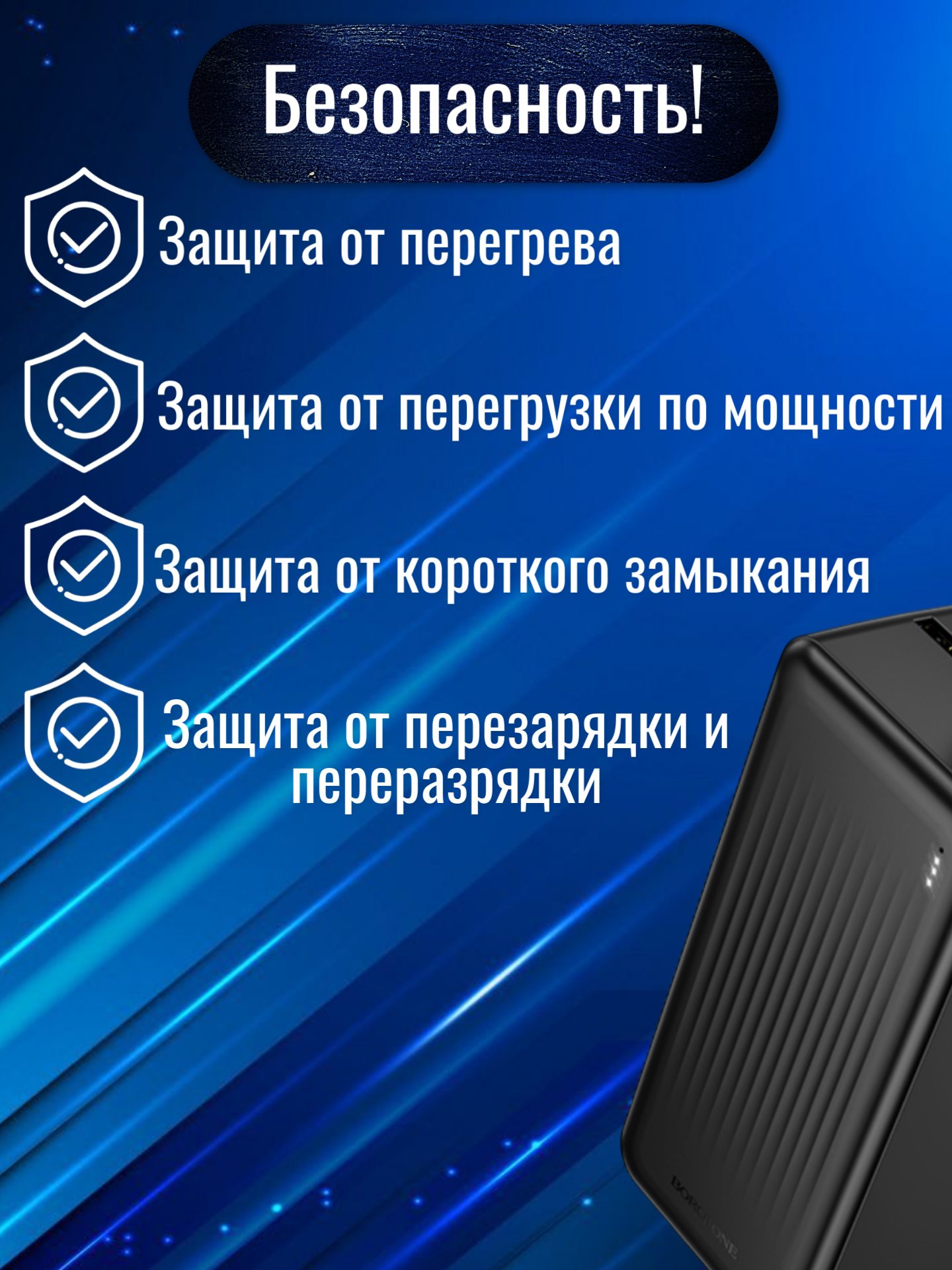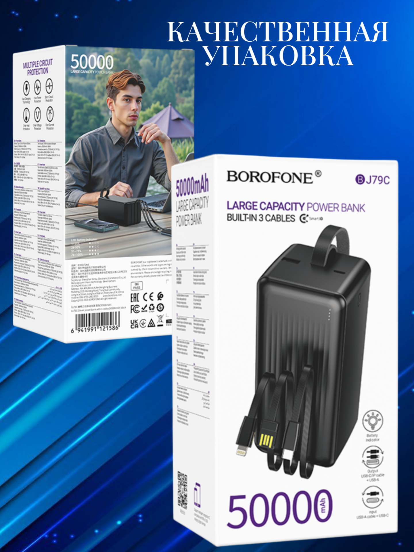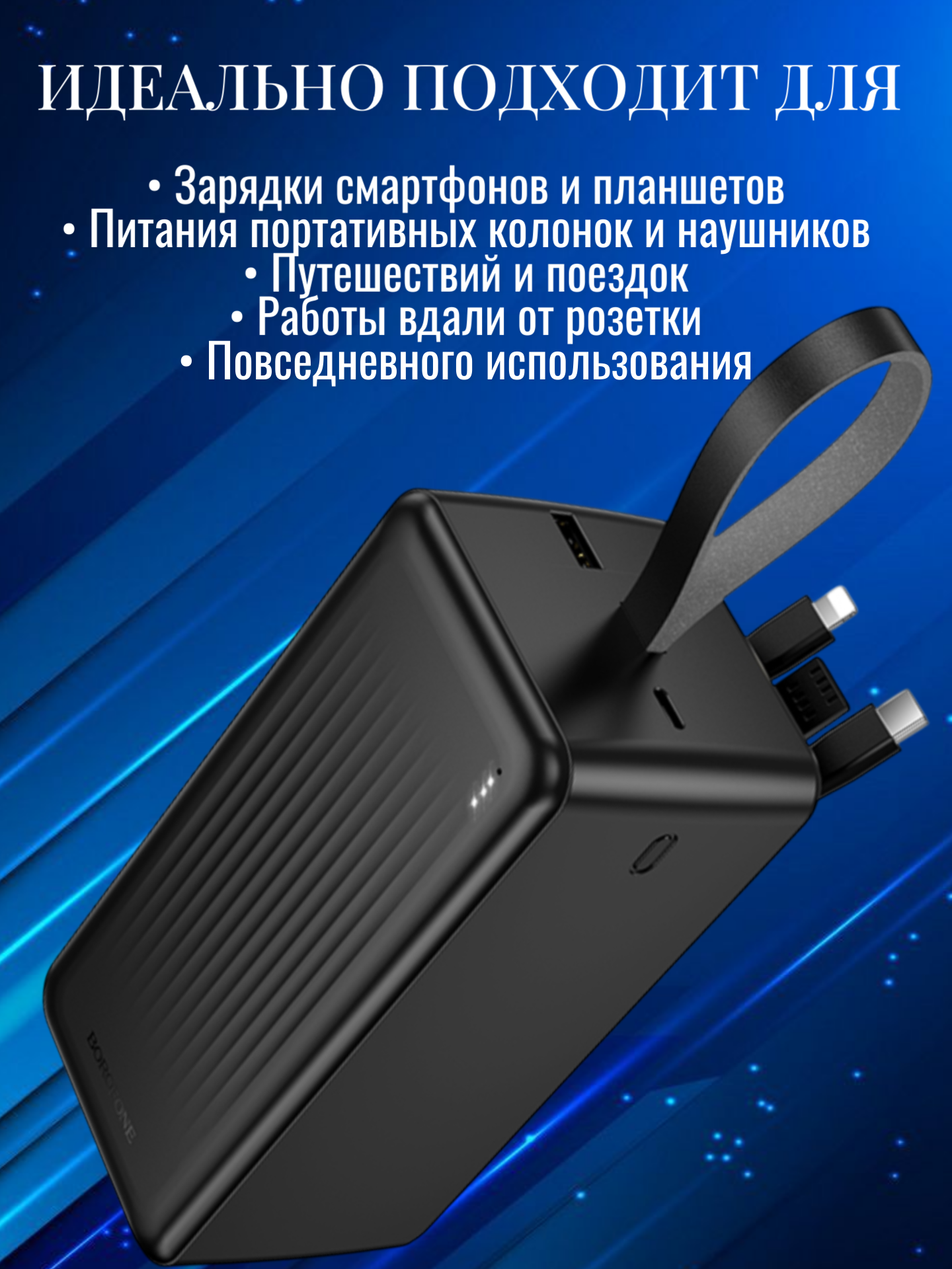 Borofone BJ79C — это баланс ёмкости, функциональности и мобильности. Благодаря встроенным кабелям, прочному корпусу и ёмкому аккумулятору он становится надёжным спутником в дальних поездках, на природе или в ситуациях, когда нужно обеспечить энергией сразу несколько устройств.