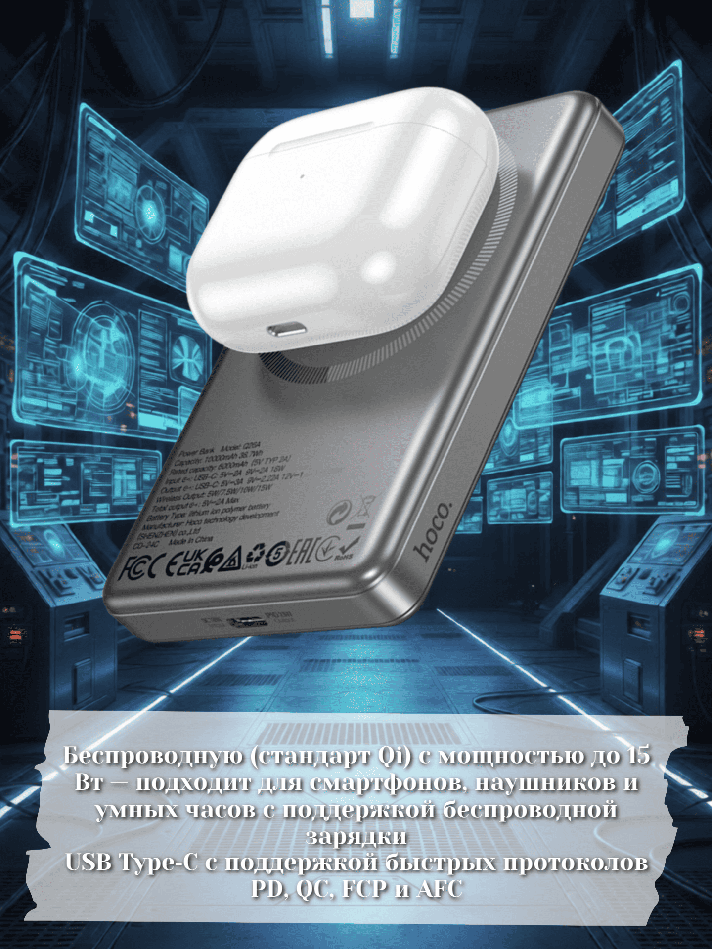Внешний аккумулятор с кабелем 22.5W+PD20W Hoco 10000 J170 серый 2 099.50 руб. / шт.