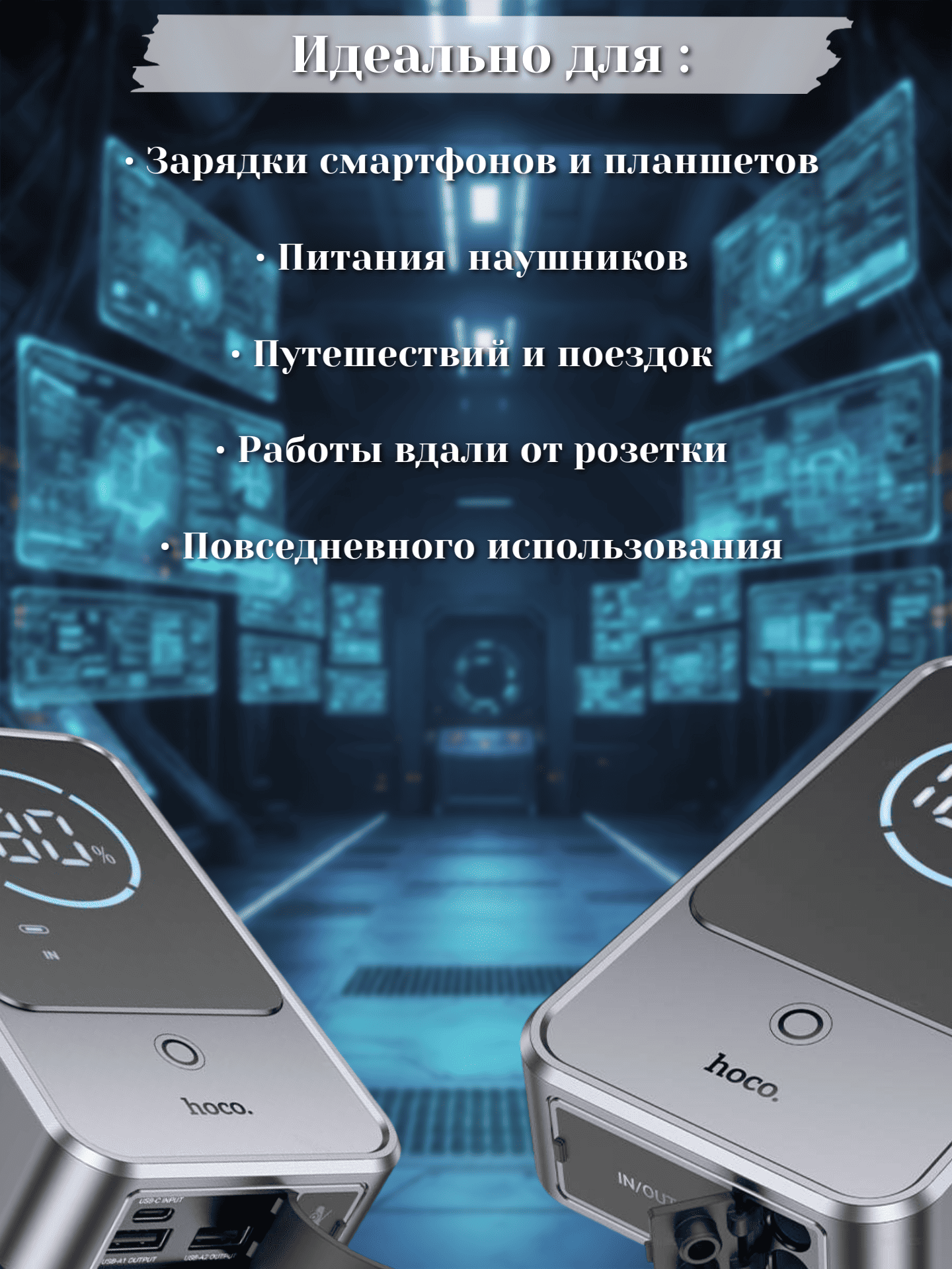 Помимо автомобильной функции, Hoco QS7 работает как внешний аккумулятор: