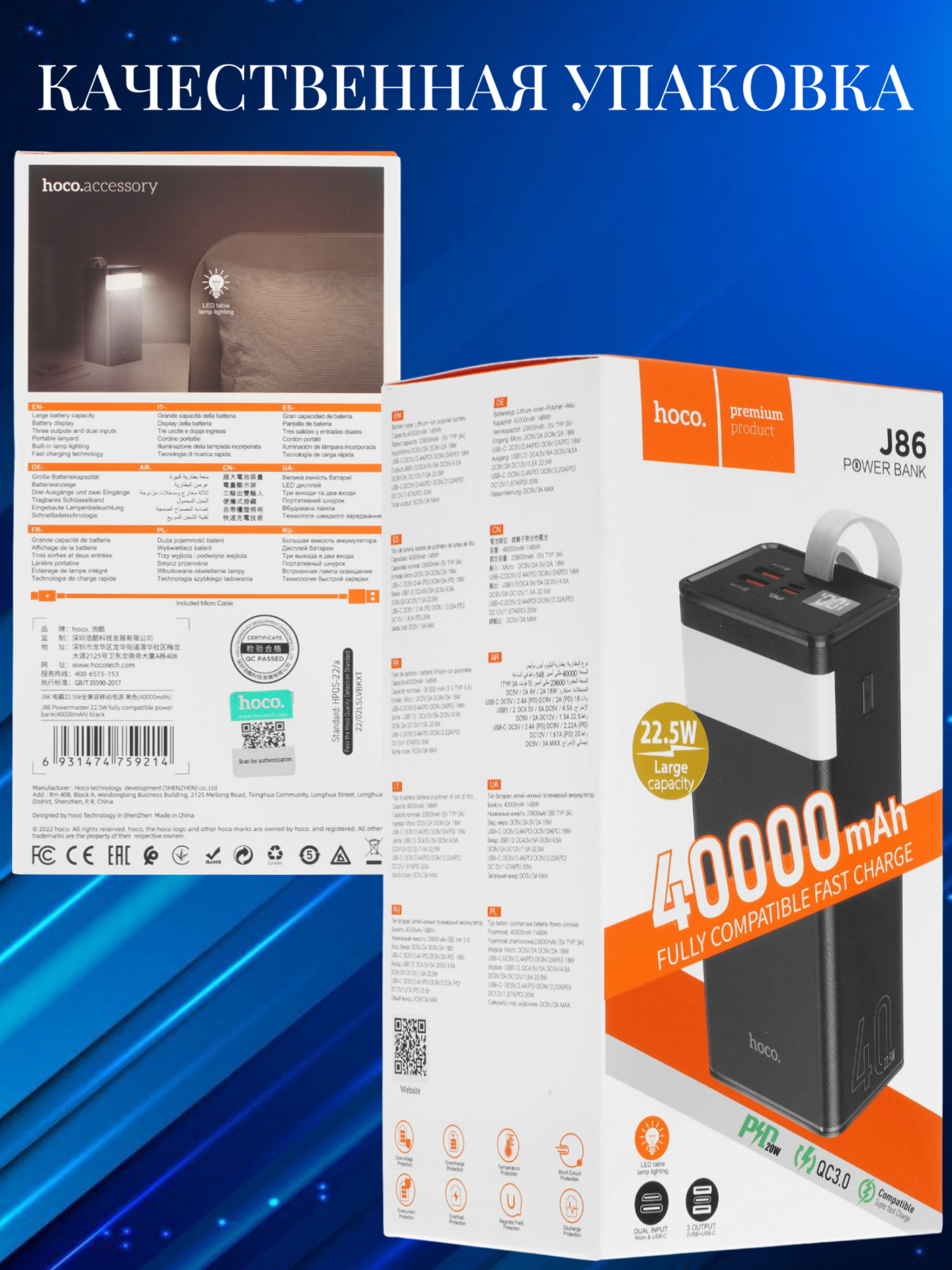 Внешний аккумулятор Hoco 75000 мАч J94 черный 5 833 руб. / шт.