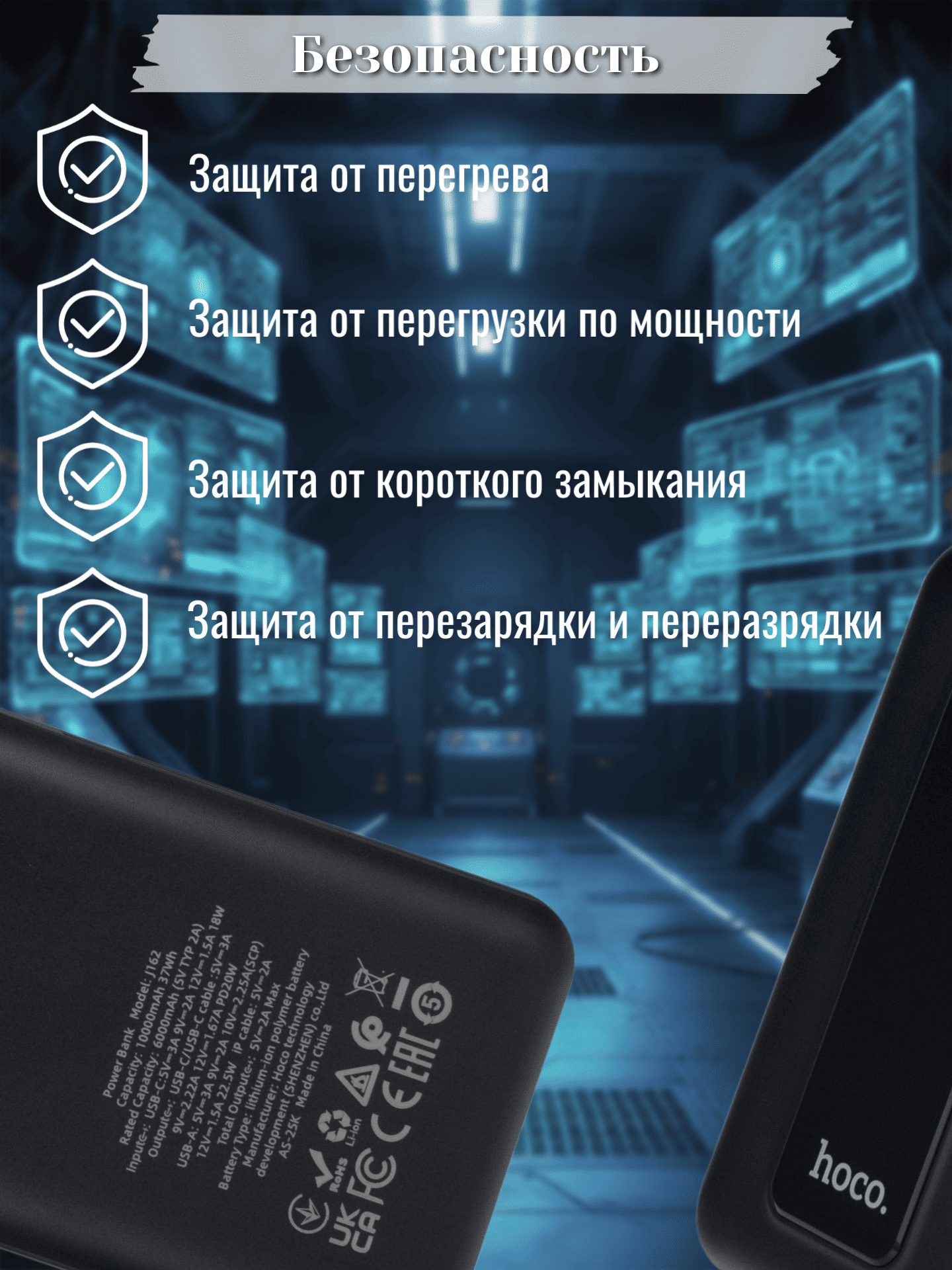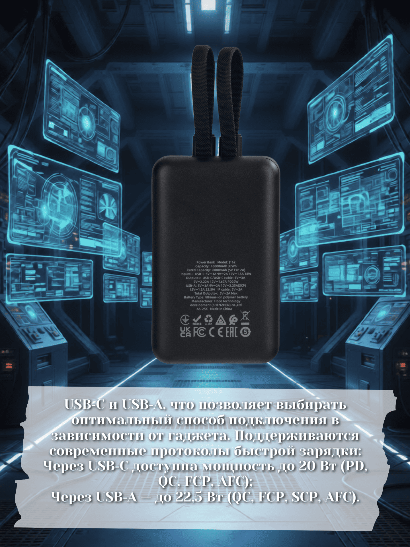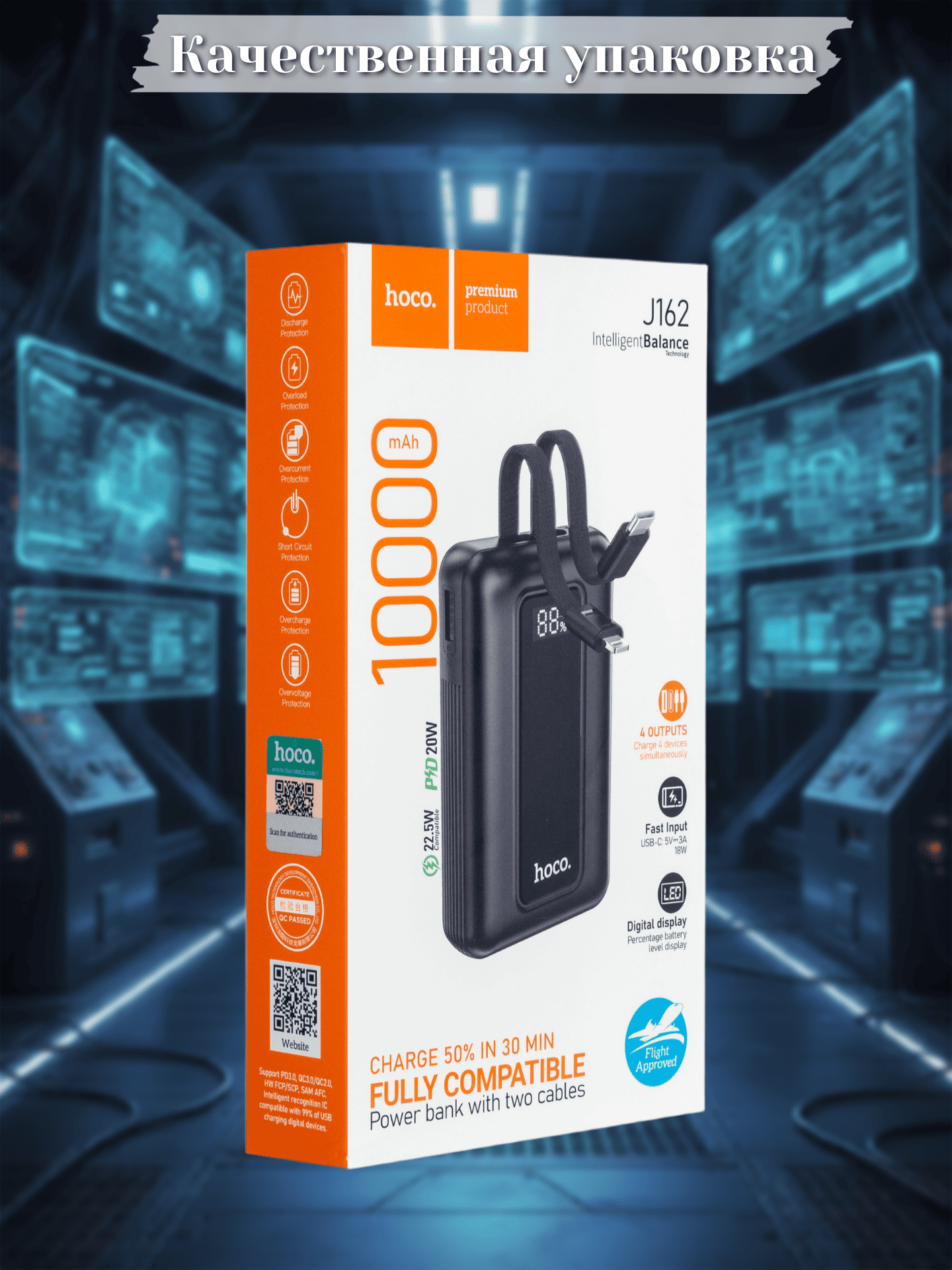 Внешний аккумулятор с кабелем 22.5W+PD20W Hoco 10000 J170 серый 2 099.50 руб. / шт.