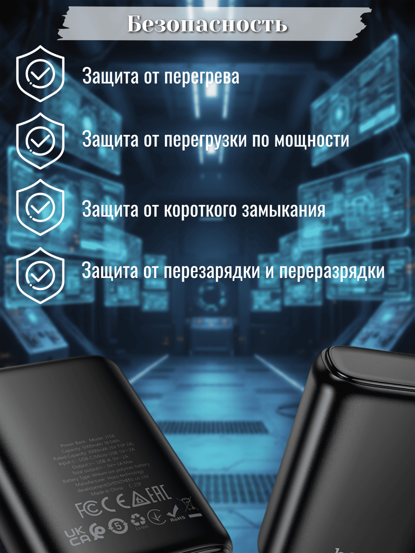 Внешний аккумулятор Hoco 75000 мАч J94 черный 5 833 руб. / шт.