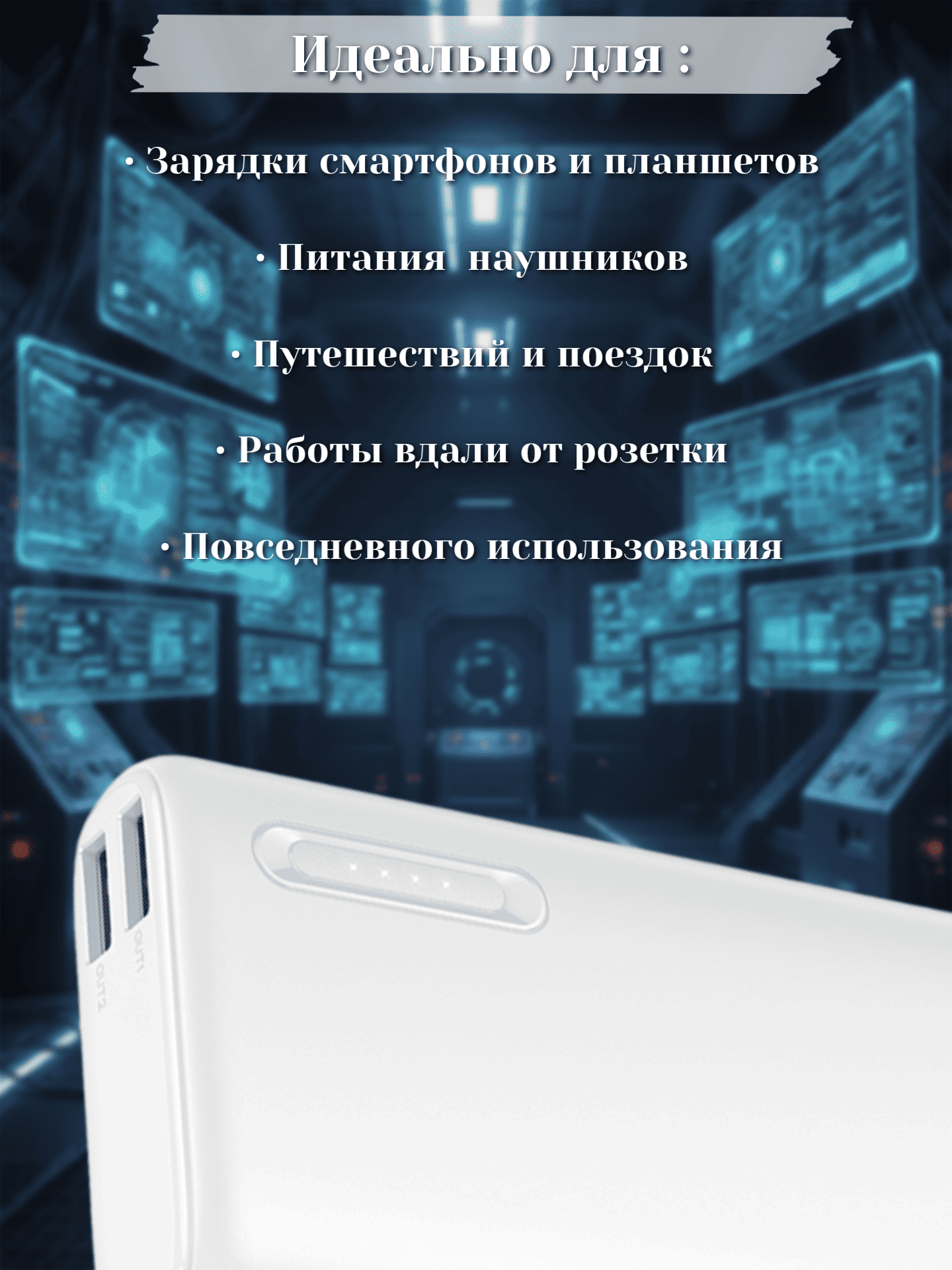 Внешний аккумулятор HOCO J158A в белом цвете — компактное и удобное решение для подзарядки мобильных устройств в дороге, на работе или в путешествиях. Устройство обладает общей ёмкостью 10000, при этом его номинальная выходная ёмкость составляет 6000, что отражает реальный объём энергии, доступной для зарядки гаджетов с учётом потерь при преобразовании напряжения.