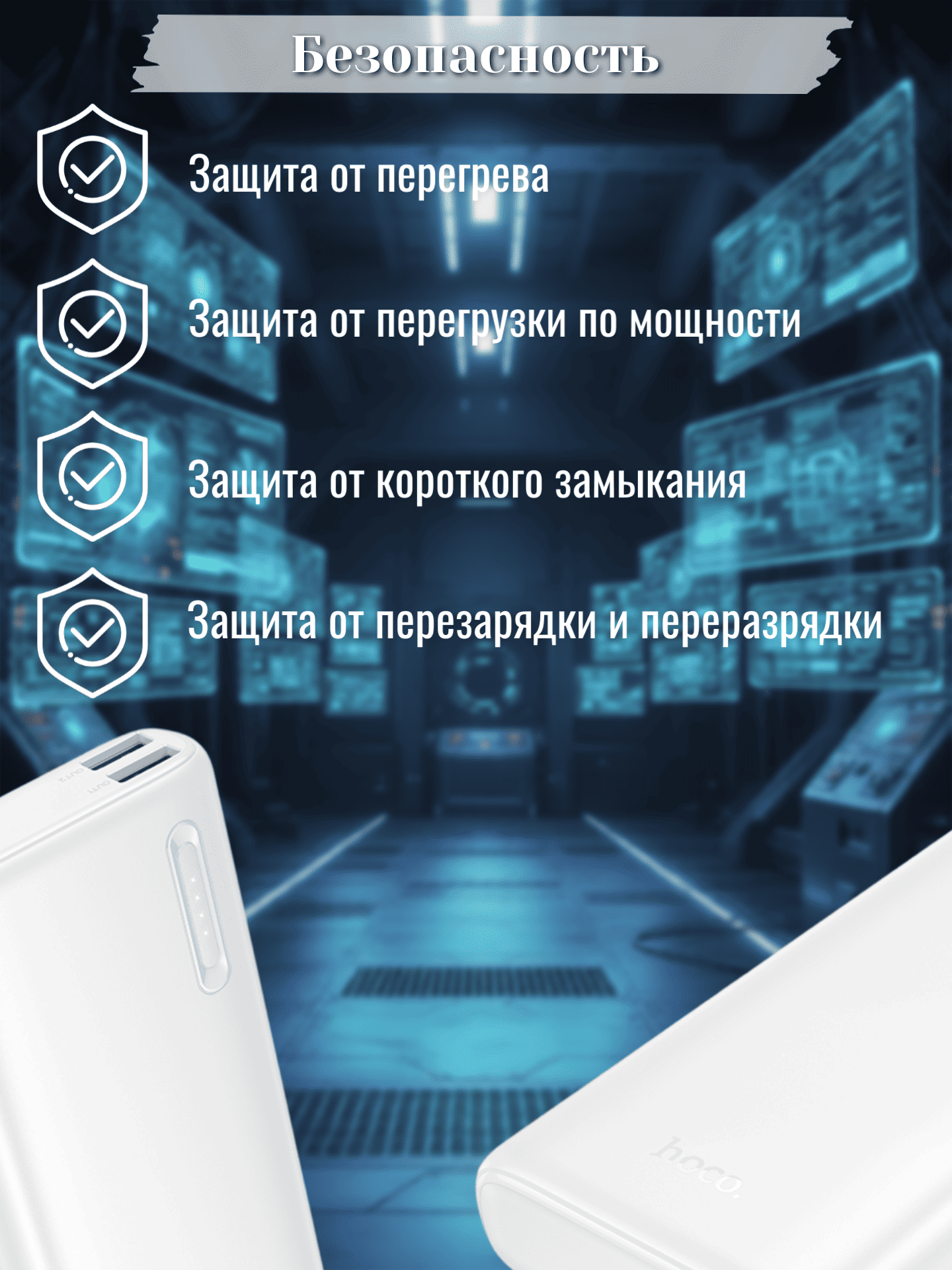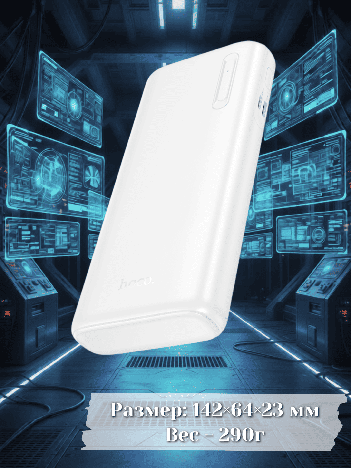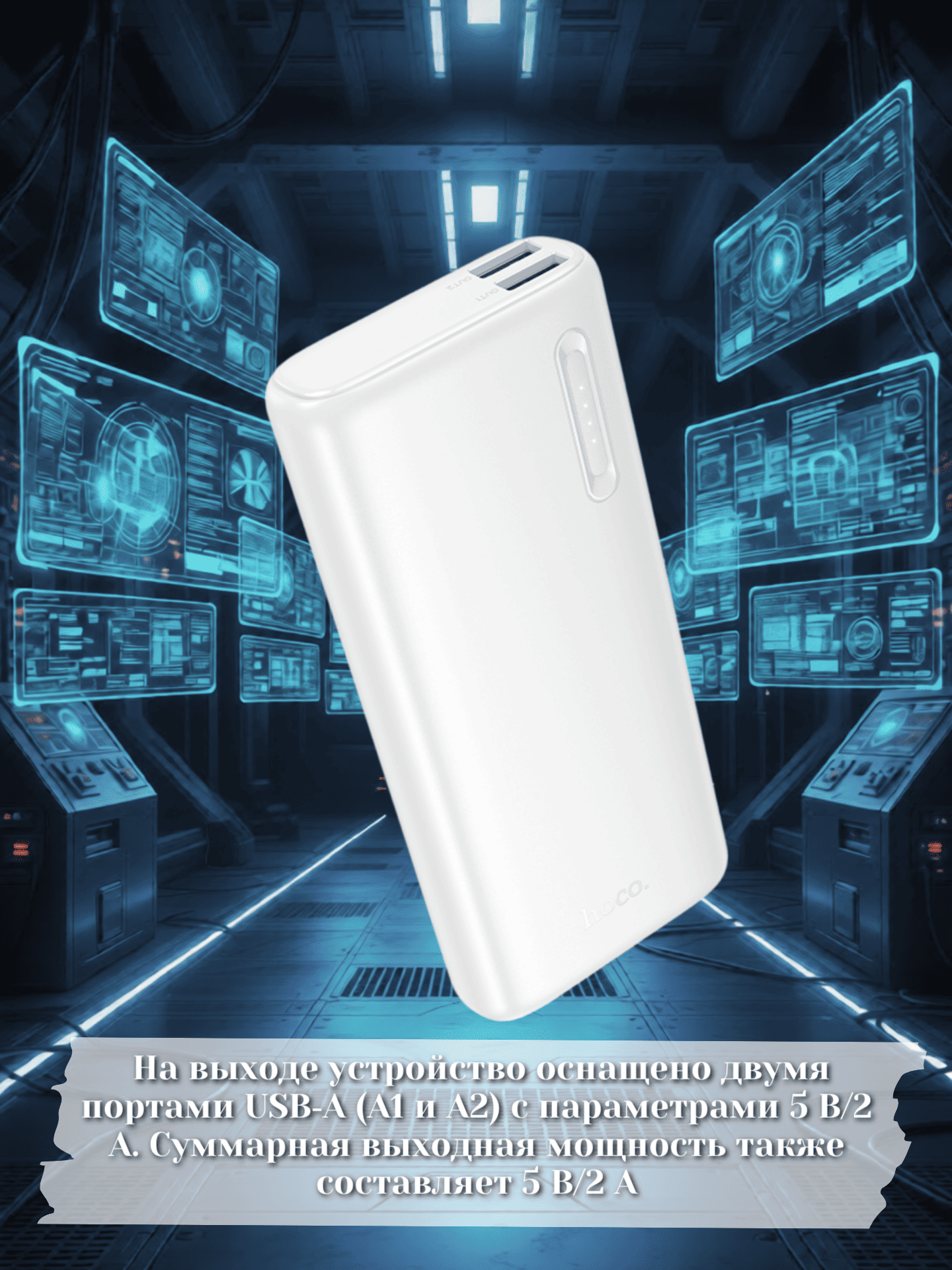 Внешний аккумулятор HOCO J158A в белом цвете — компактное и удобное решение для подзарядки мобильных устройств в дороге, на работе или в путешествиях.