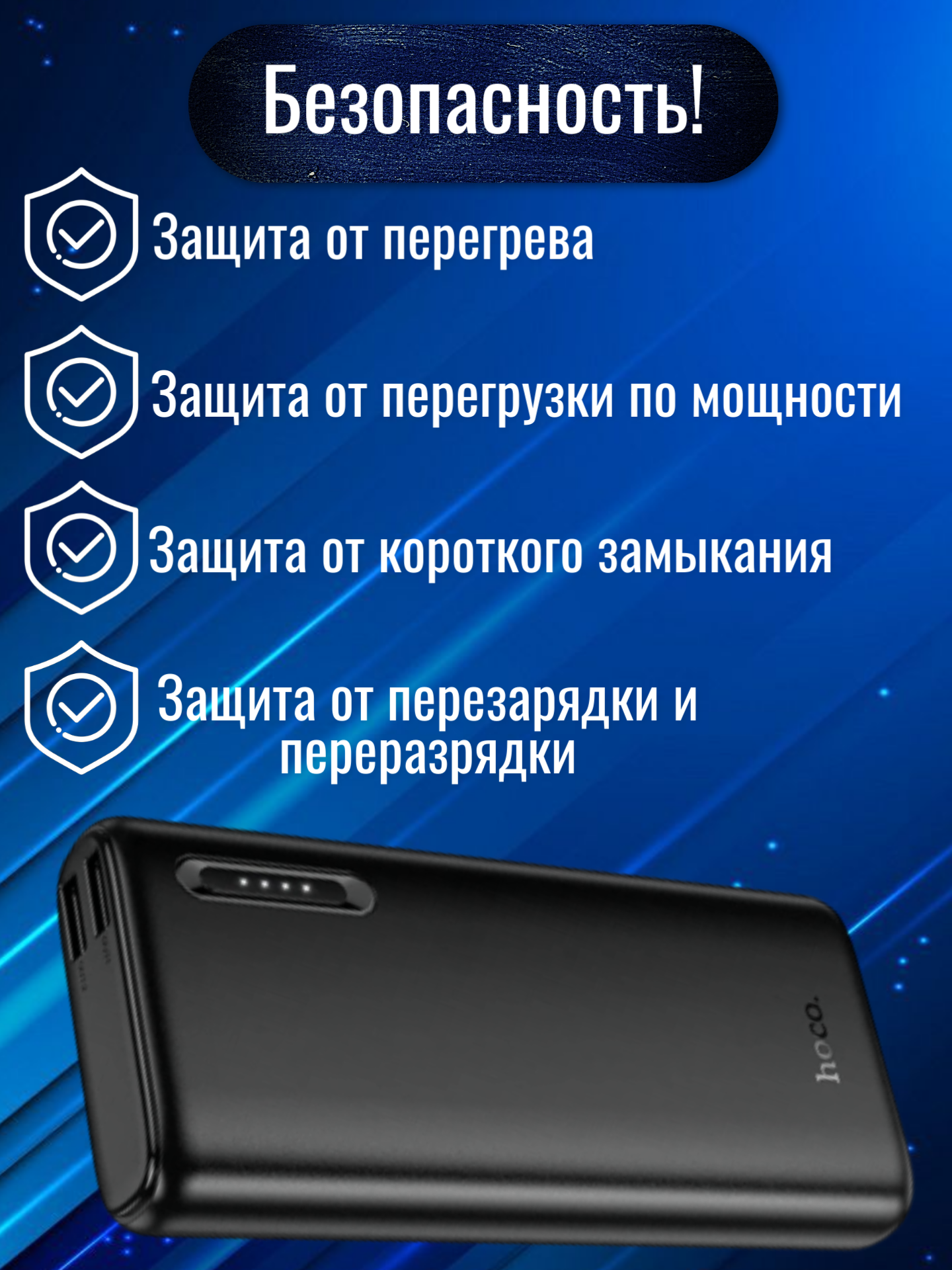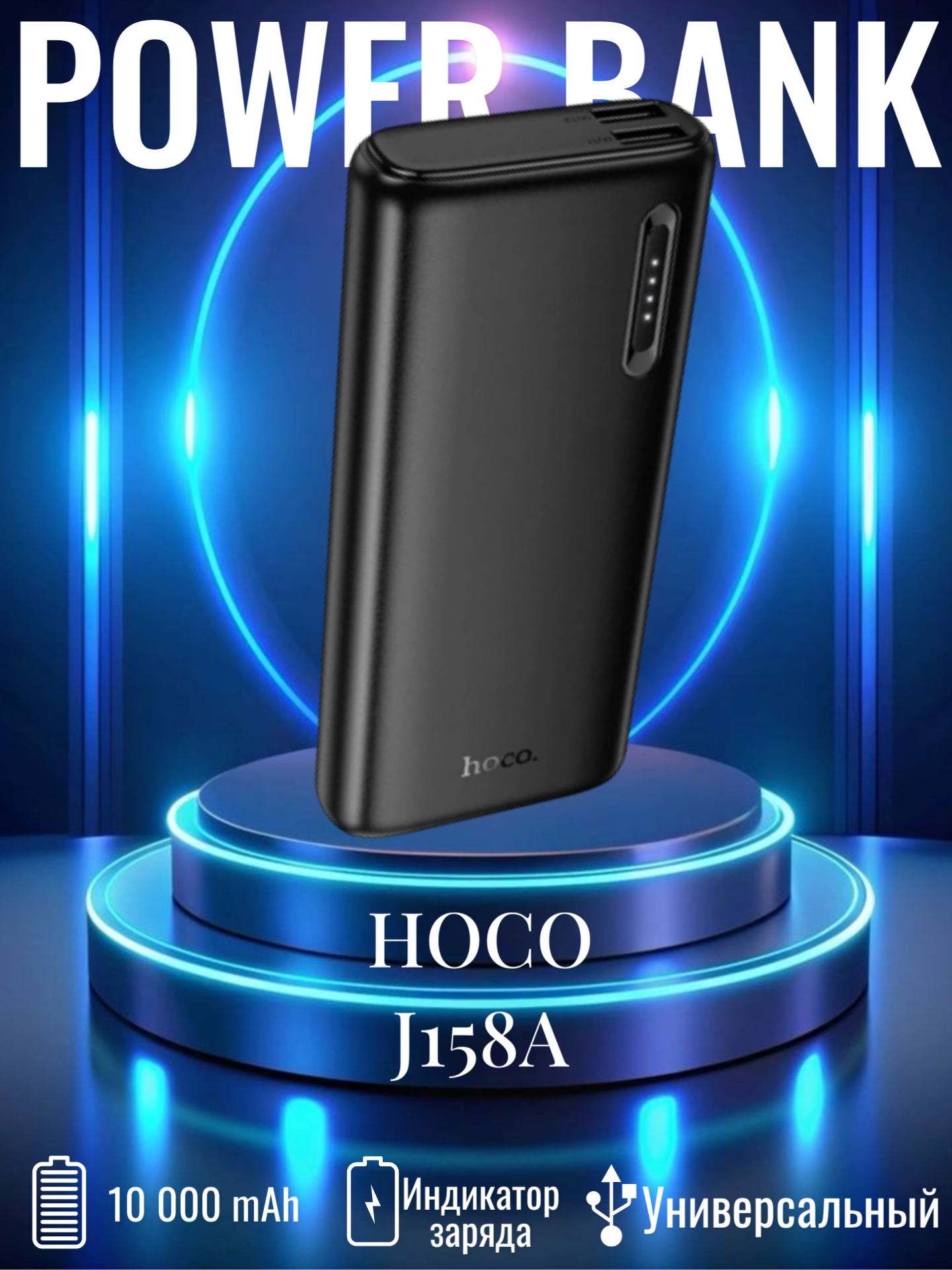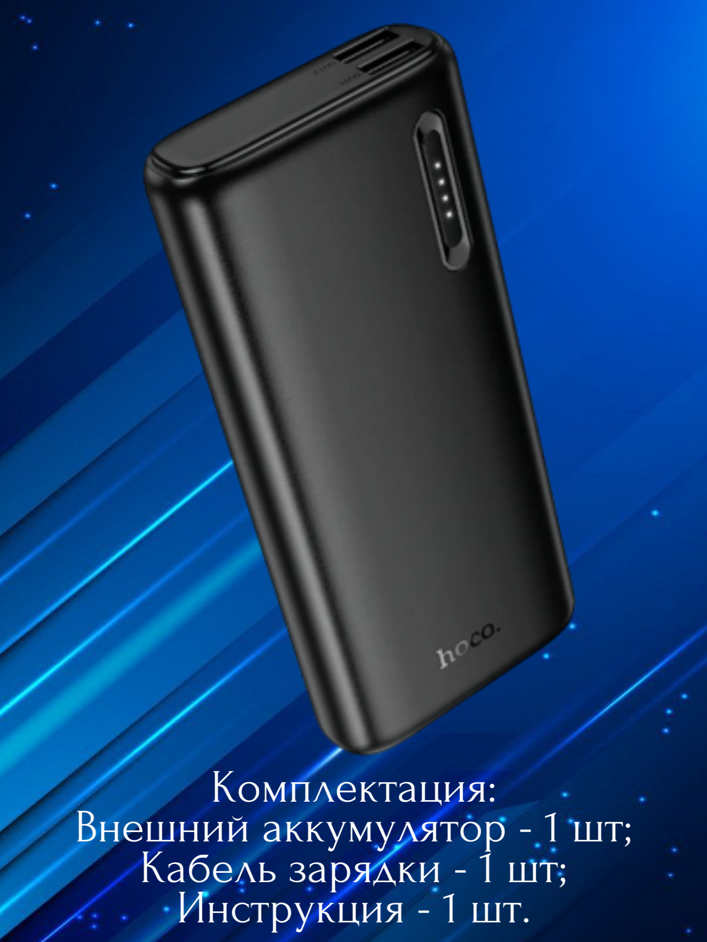 Внешний аккумулятор HOCO J158A в черном цвете — компактное и удобное решение для подзарядки мобильных устройств в дороге, на работе или в путешествиях.