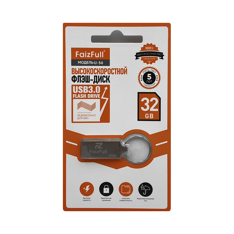 Флешка-брелок FaizFull U56 объёмом 32 ГБ — компактное и практичное решение для хранения и переноса данных. Благодаря поддержке интерфейса USB 3.0 устройство обеспечивает высокую скорость передачи файлов, позволяя экономить время при копировании больших объёмов информации.