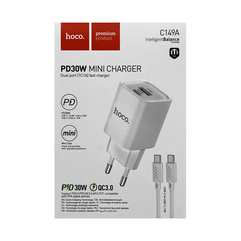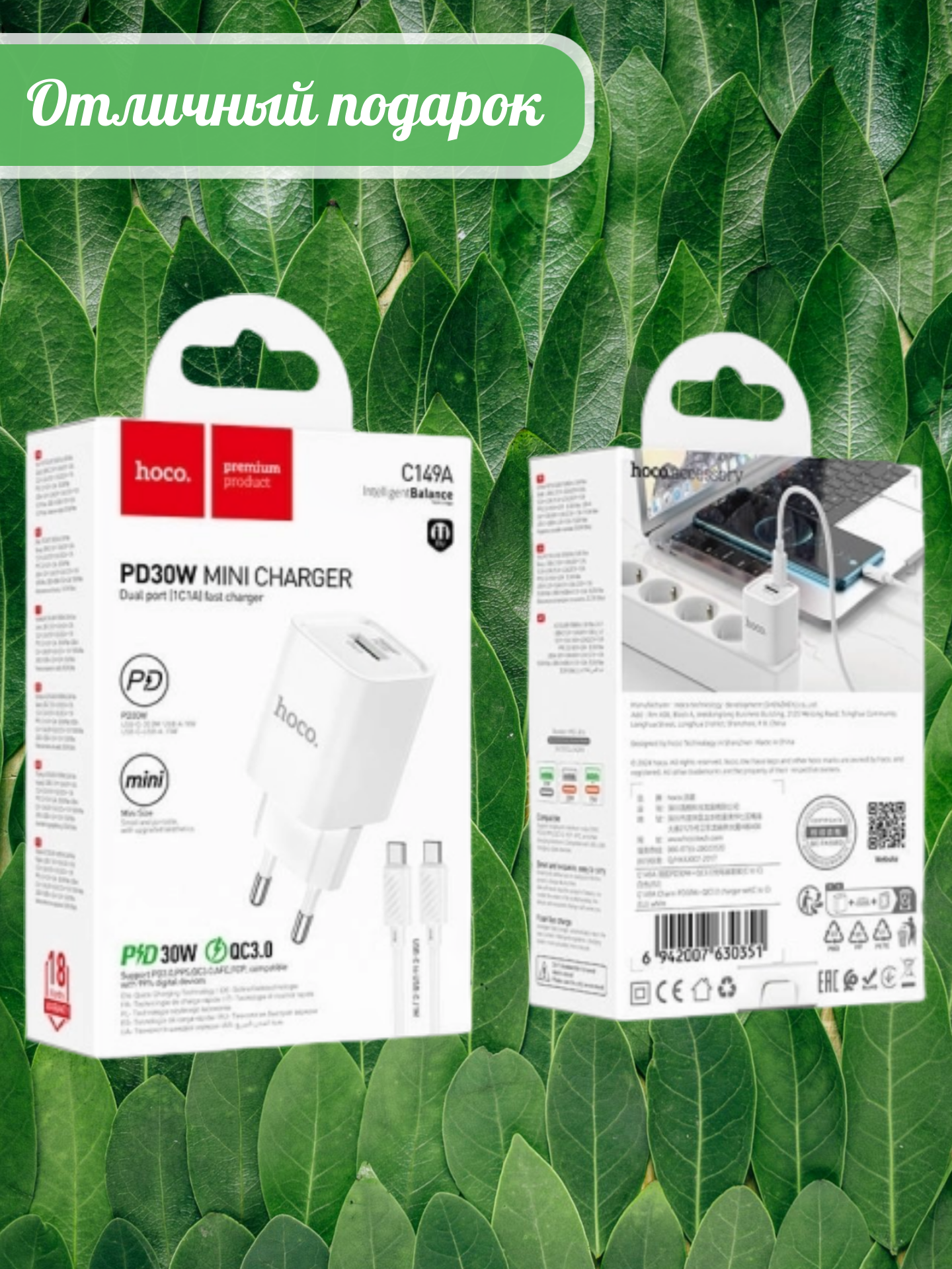 Сетевое зарядное устройство Hoco C127A + кабель Type-C Lightning 1 м, черный 2 023.50 руб. / шт.