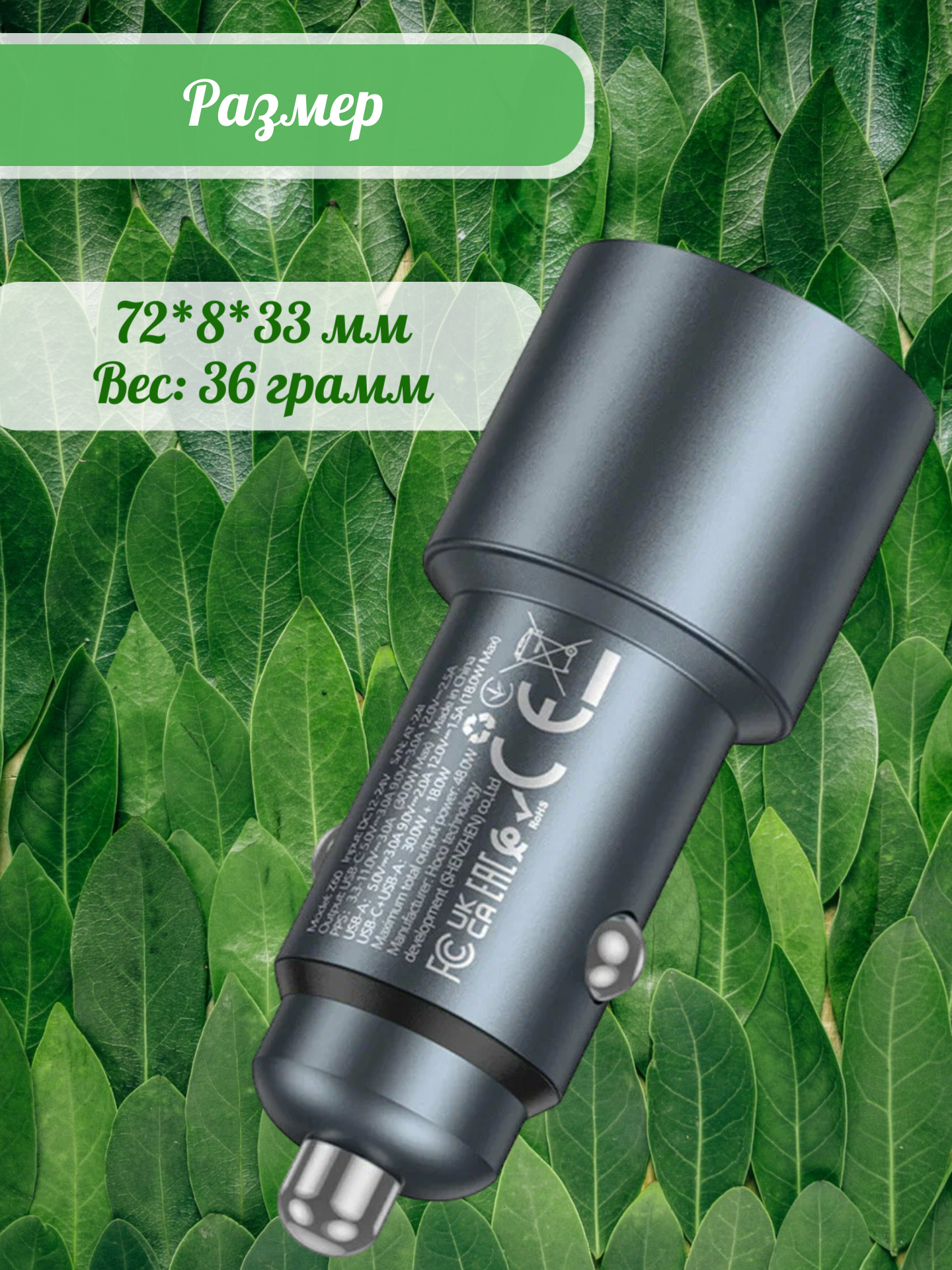 Компактные габариты устройства 72х8х33 мм) и небольшой вес (36 г) делают его удобным для установки в прикуриватель автомобиля: оно не занимает много места и не мешает обзору. Прочная конструкция и качественные внутренние компоненты гарантируют стабильную работу в условиях вибрации и перепадов напряжения бортовой сети.