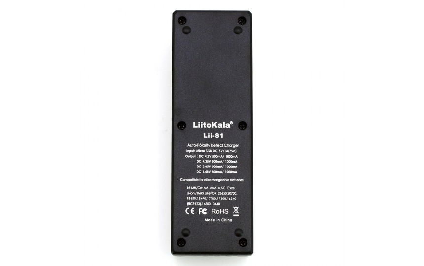 LiitoKala Lii-S1 - универсальное интеллектуальное зарядное устройство, совместимое практически со всеми цилиндрическими аккумуляторами. Lii-S1 автоматически распознает литий-ионные, никель-металлгидридные и никель-кадмиевые аккумуляторы, заряжает литий-фосфатные (LiFePO4) аккумуляторы, а так же Li-ION аккумуляторы с конечным напряжением 4,35В.