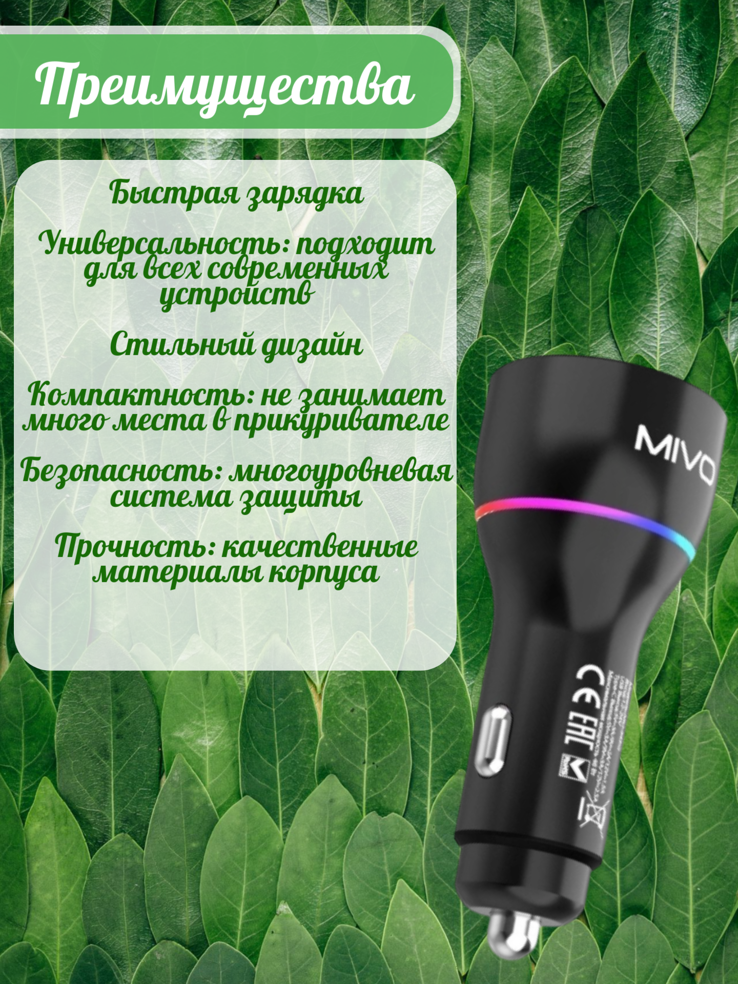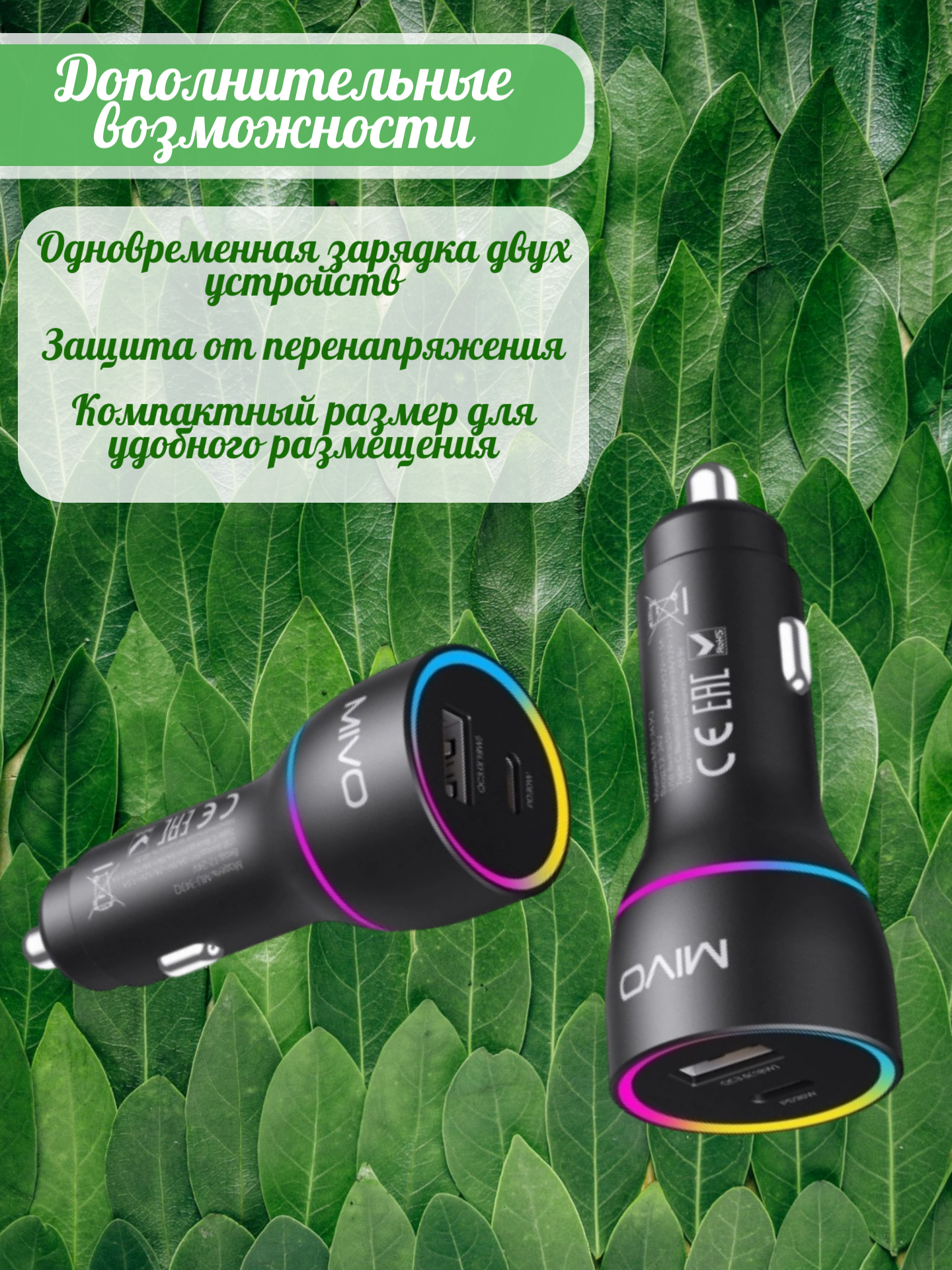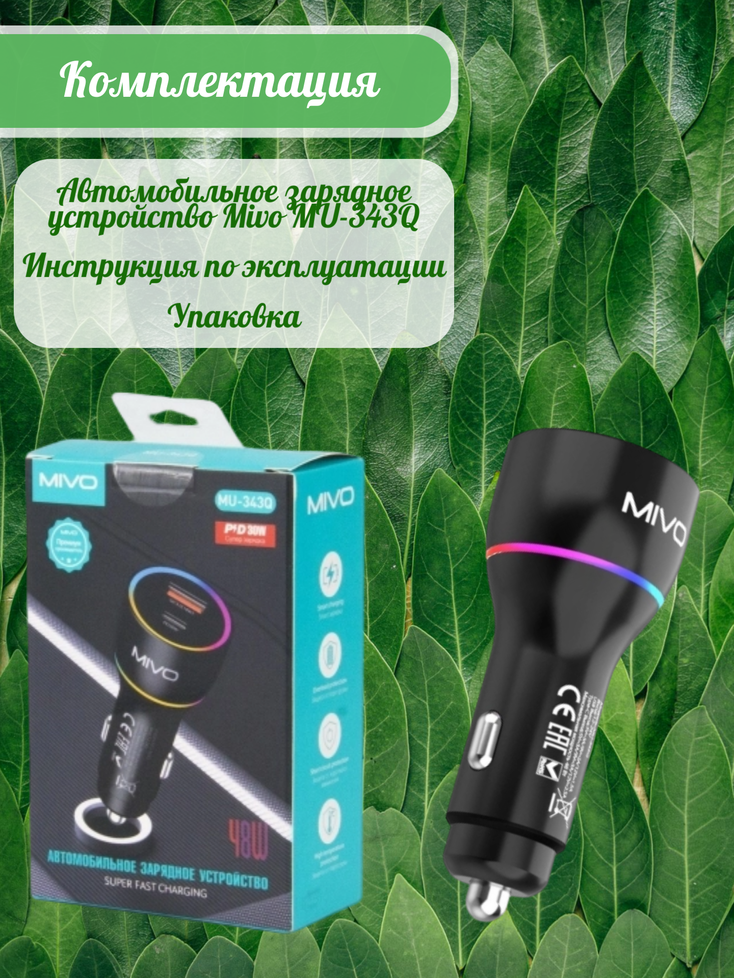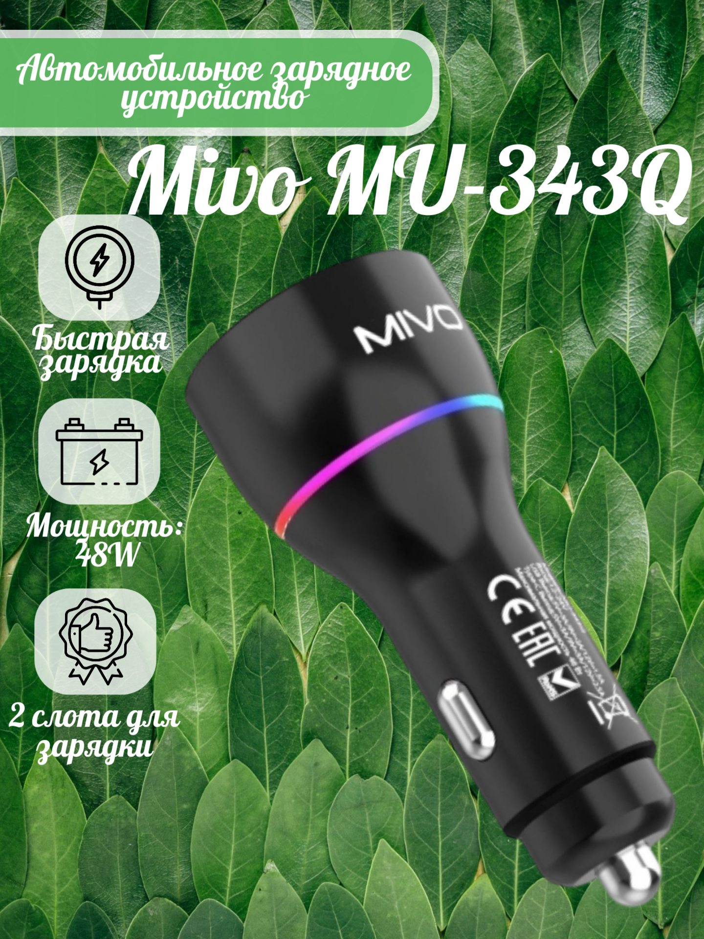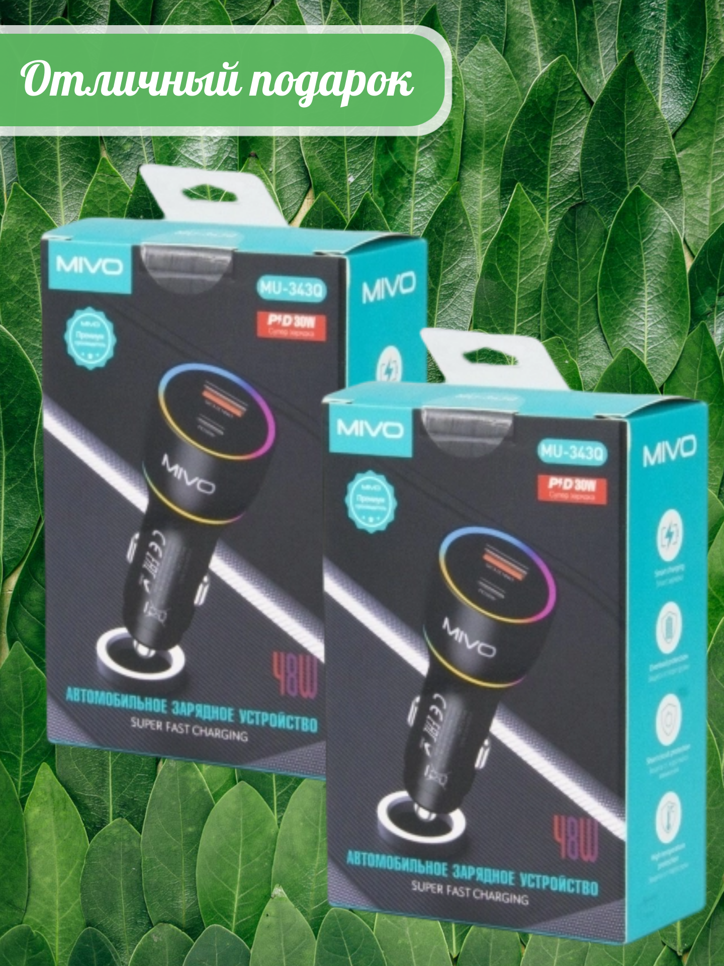 | Автомобильное зарядное устройство Mivo MU-343Q | 1 шт |