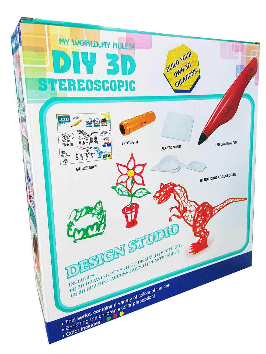В отличие от карандашей, у 3D ручки LM222-3D назначение – рисовать в воздухе. Каждая новая линия, проведенная в любом направлении, застывает и превращается в твердую тонкую пластиковую нить. Несколько таких нитей в разном или одном направлении создают абстрактную поделку.