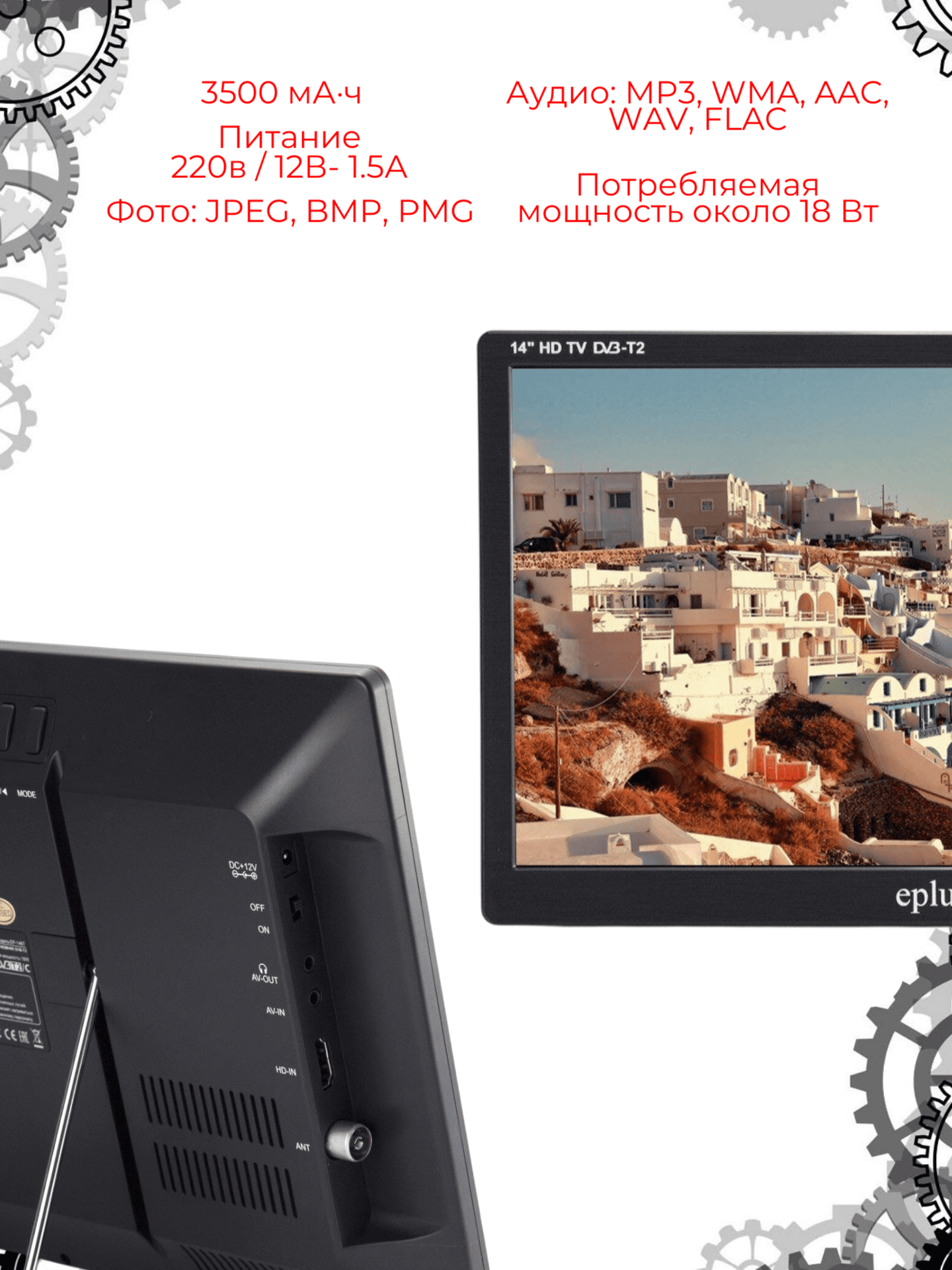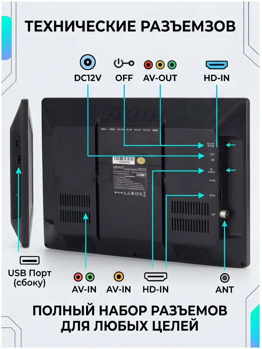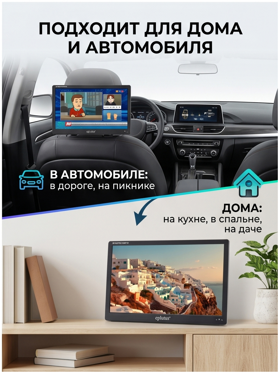 Портативный телевизор Eplutus EP-159T, диагональ 15,4", технология HDR, черный 9 861 руб. / шт.