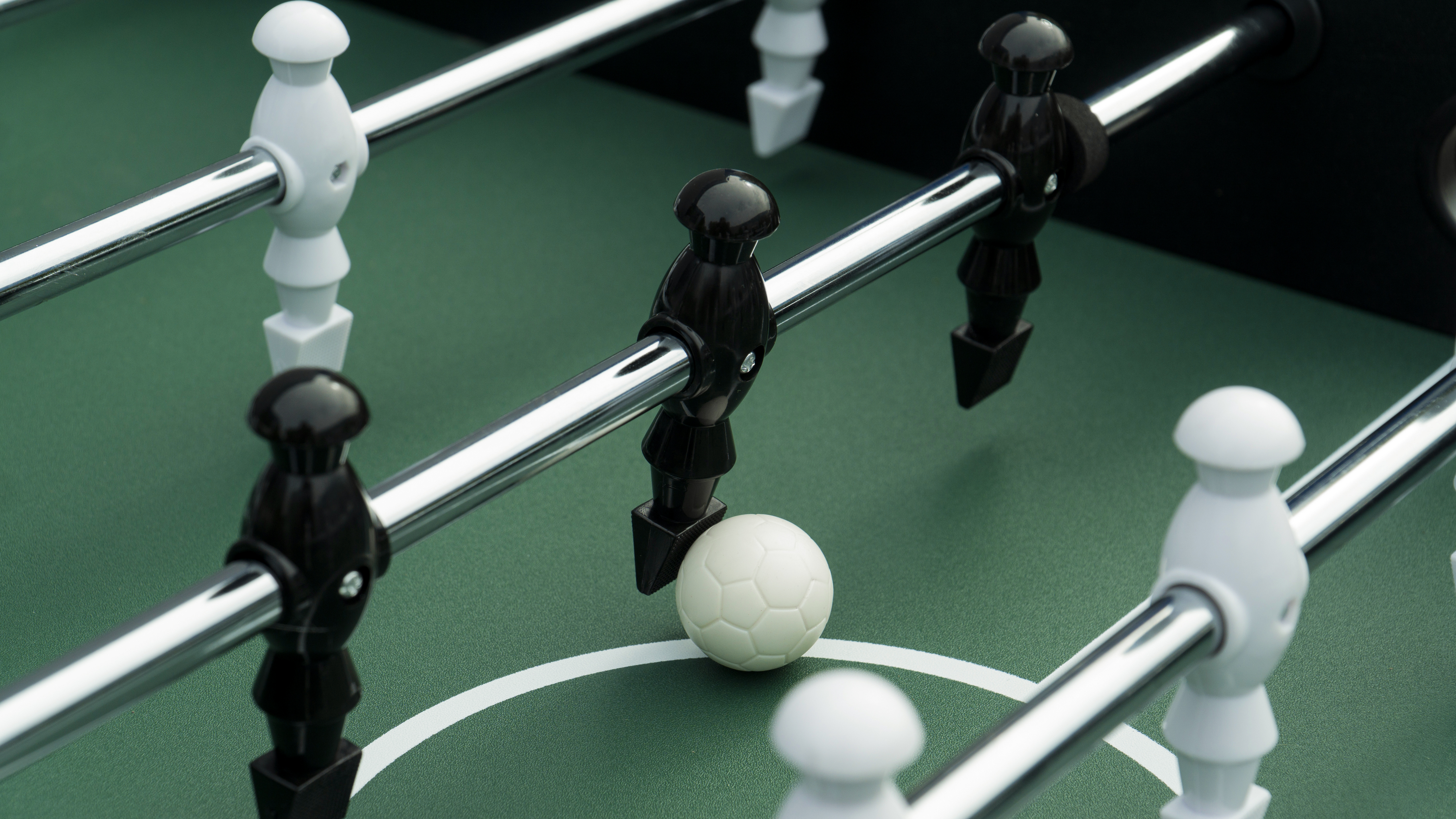 Кикер: 22 игрока из прочного пластика, текстурные мячи с хорошим сцеплением с игровым полем и фигурками;