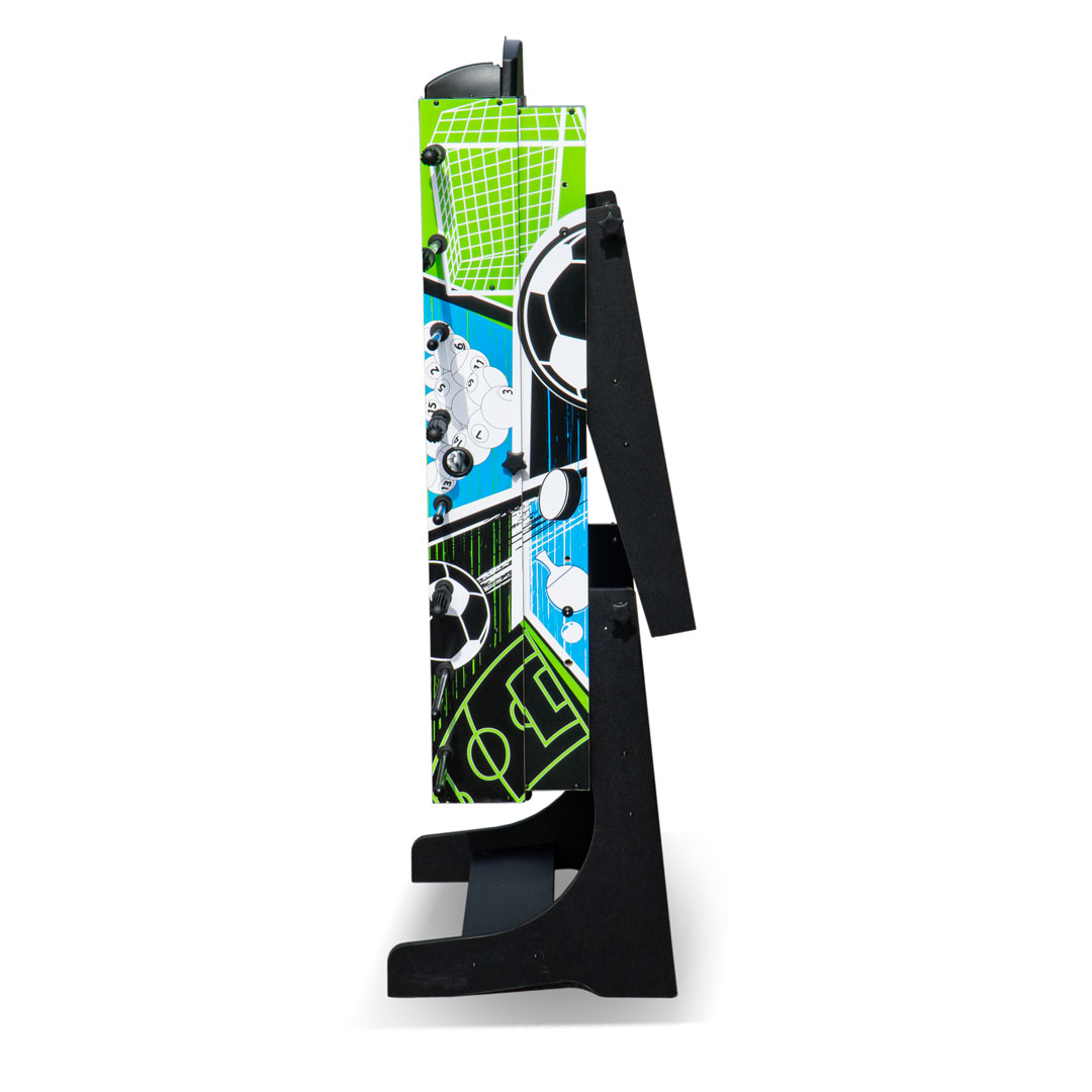 Корпус выполнен в спортивном стиле, а яркие цвета сменных игровых поверхностей создают динамичную и азартную атмосферу соревнования.