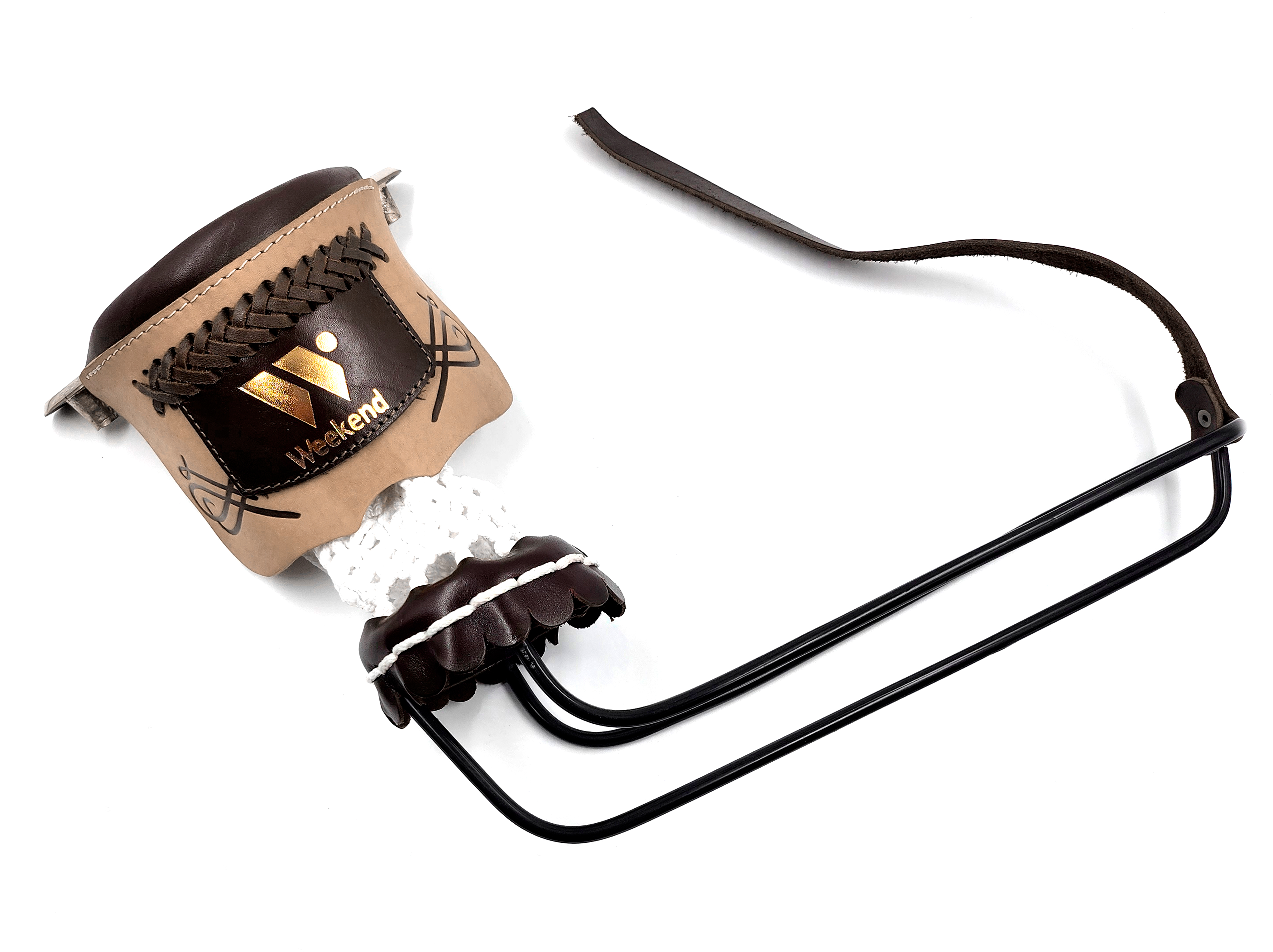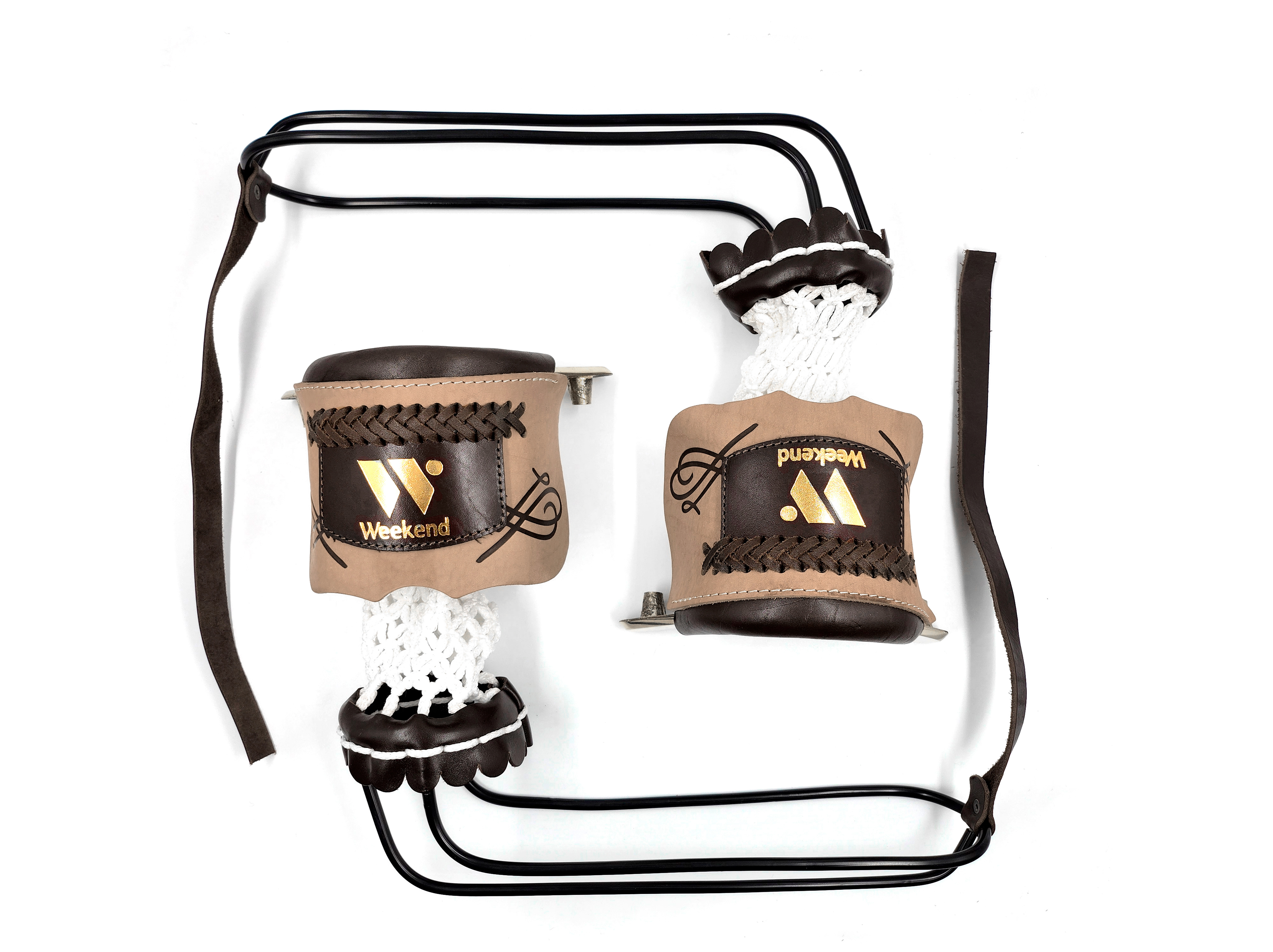 Премиальная отделка (Кожа + Лен): Пелерина выполнена из натуральной кожи бежевого цвета, которая обеспечивает мягкую амортизацию при попадании шара. Сетка представляет собой прочную льняную плетенку (макраме), устойчивую к износу и растяжению, что гарантирует долгий срок службы.